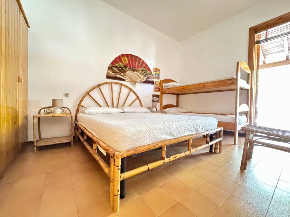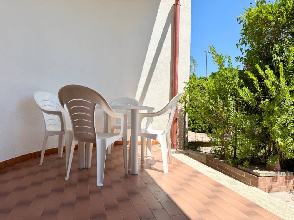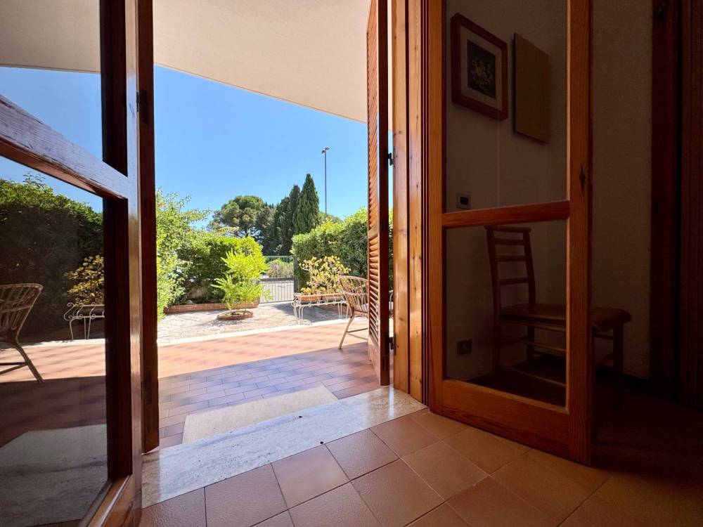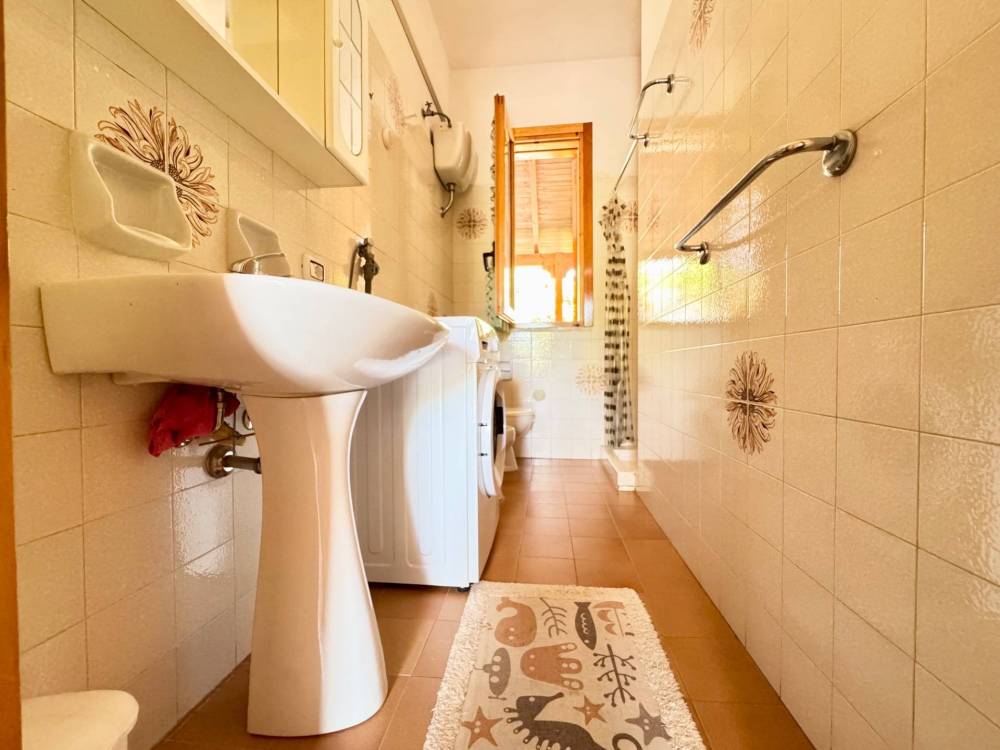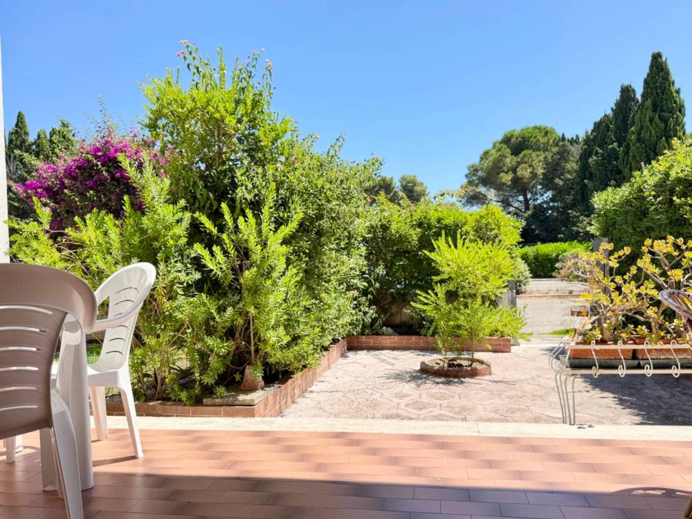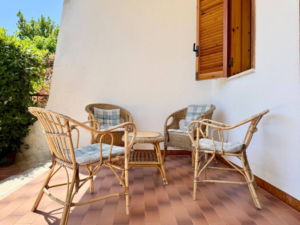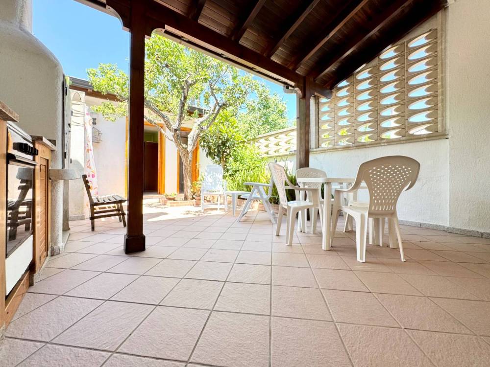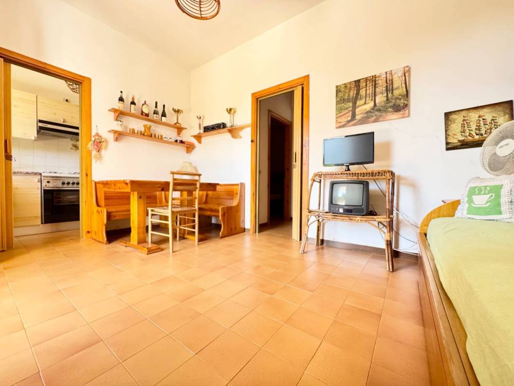 soggiorno accogliente con cucinotto separato, due camere da letto, due bagni ed un giardino retrostante attrezzato con barbecue in pietra, perfetto per pranzi e cene allaperto.