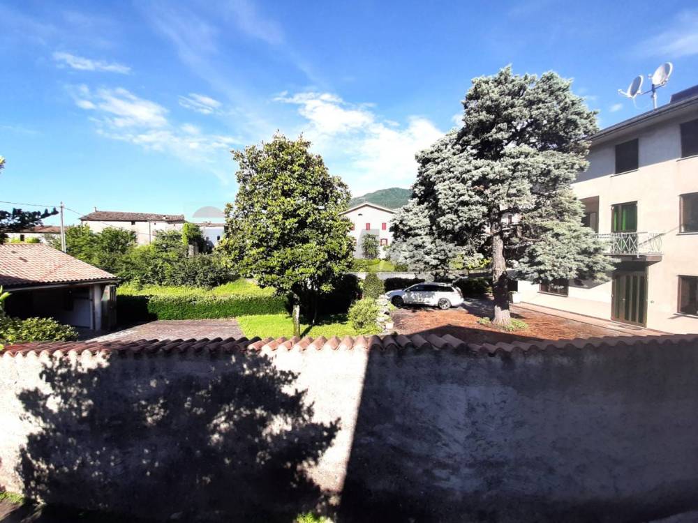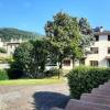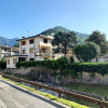The driveway entrance from Via Cesare Battisti leads to the open parking area, from which you can reach the main building entrance and the outdoor porch on the side of the house, providing access to the...