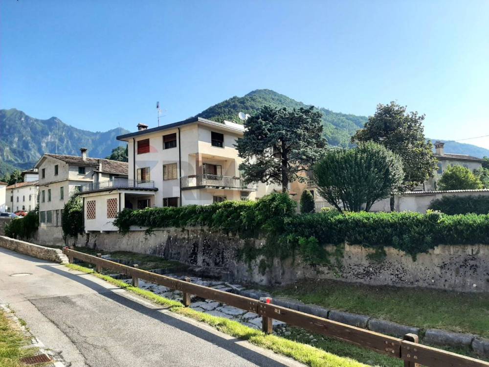 In the historic center of Cison di Valmarino, RE/MAX exclusively offers an Independent House on 3 levels with a spacious open area and a private garden of over 450 square meters. It features a large garage, two road entrances, thermal and photovoltaic solar panels, and overlooks the Rujo river with a view of the surrounding mountains.