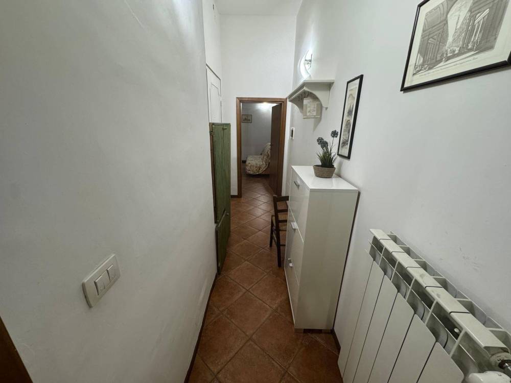 L'appartamento, posto al piano terra rialzato, si presenta in buone condizioni ed è caratterizzato da soffitti con travi in legno a vista e pavimenti in autentico cotto fiorentino, che conferiscono calore e charme all'ambiente.