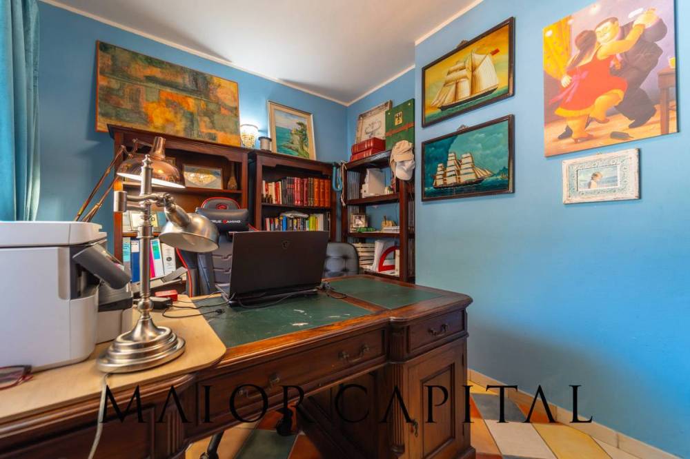 Ogni ambiente è stato pensato per coniugare stile, comfort e personalità, ed è impreziosito da pavimenti dalle tonalità policrome che donano vivacità e unicità. Le tonalità calde delle pareti, armoniosamente abbinate a quelle più neutre delle colonne, contribuiscono a creare unatmosfera raffinata e accogliente. Al piano terra si sviluppa la zona living, composta da soggiorno, sala da pranzo, cucina separata, studio e un bagno di servizio. Questarea si affaccia su unampia veranda, utilizzabile come spazio esterno vivibile, oltre che su un comodo terrazzo.