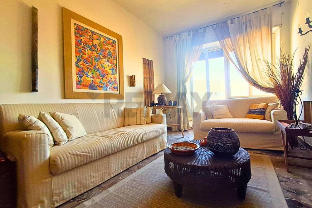 La disposizione degli spazi, su una superficie di 89 mq calpestabili, è funzionale ed è ideale per ospitare una coppia o una piccola famiglia. Un ampio salone comunica con l'adiacente tinello che ospita una cucina attrezzata e dotata di isola.