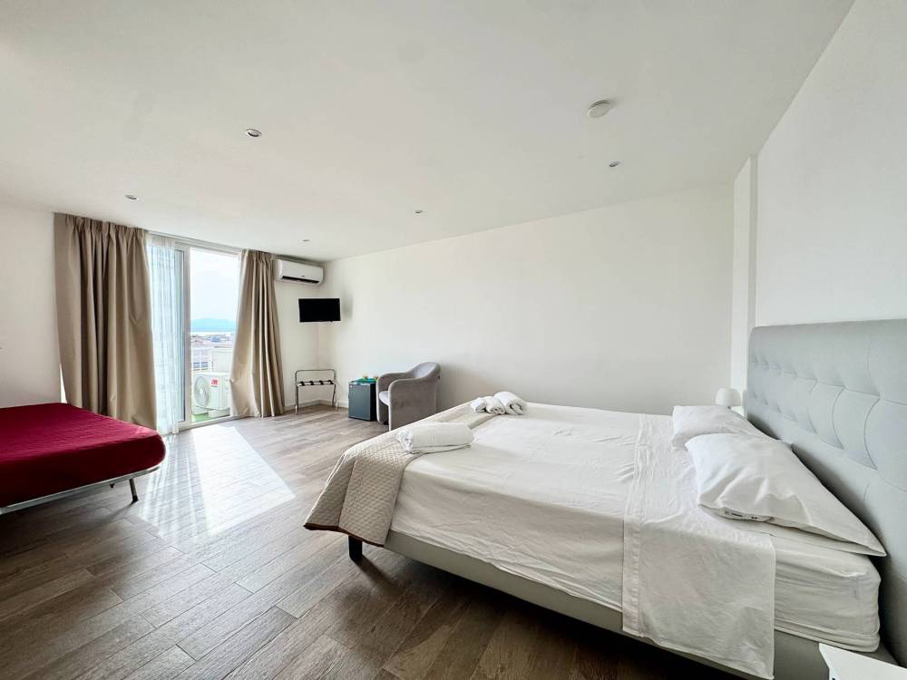 Proseguendo al terzo piano, si accede a due suite dal design elegante e moderno, entrambe con affaccio diretto sul mare. Queste suite sono state concepite per offrire un'esperienza di soggiorno di alto livello, combinando comfort e stile. Sullo stesso piano è presente uno spazio comune che ospita una cucina condivisa, progettata per momenti di convivialità e relax tra gli ospiti.