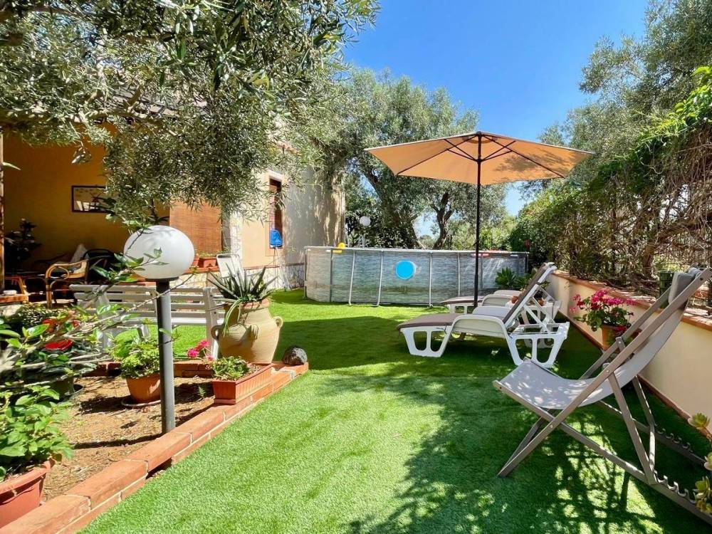 Il giardino è un vero angolo di paradiso, con alberi di ulivo, frutteti e piante ornamentali, creando un'atmosfera di naturalità e bellezza. Gli spazi esterni offrono anche la possibilità di creare un angolo con piscina e patio solarium, ideale per godere del sole siciliano in totale relax.