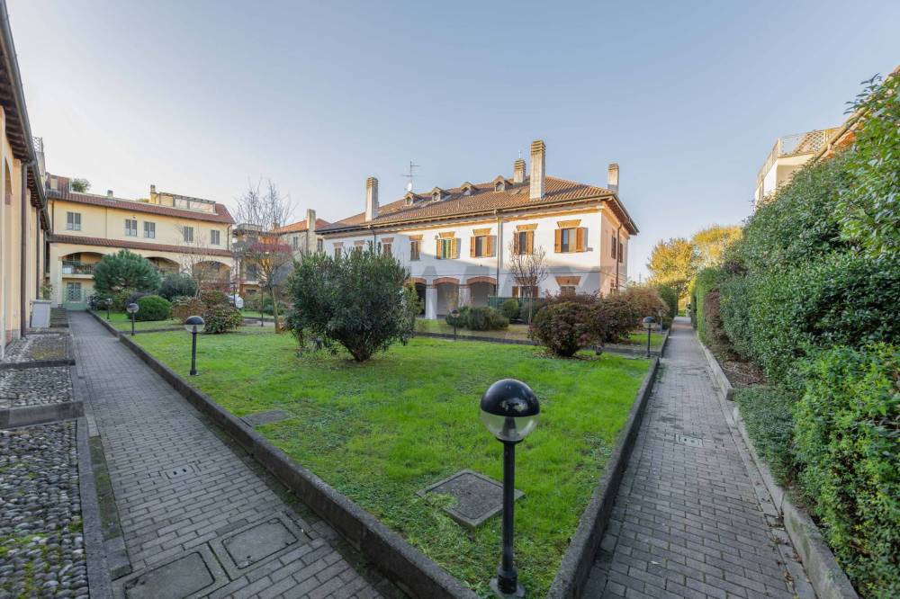 Allinterno del complesso proponiamo in vendita unelegante soluzione abitativa disposta su quattro livelli e sviluppata su una superficie complessiva di 150 mq, così composta: patio con ingresso indipendente, accesso alla zona living/pranzo, cucina abitabile con affaccio sul giardino privato di circa 30 mq., un'elegante scala collega il resto della casa; al primo piano, vi è la zona notte con due camere da letto, entrambe dotate di balcone coperto e un ampio bagno finestrato; in mansarda un ampio open space con travi a vista, ambiente ideale come studio o svago. Al piano interrato, ampia taverna, perfetta per momenti conviviali con amici e parenti, completa di pratico locale lavanderia/bagno. A completare la proprietà è presente unautorimessa privata al prezzo di 25.000.
