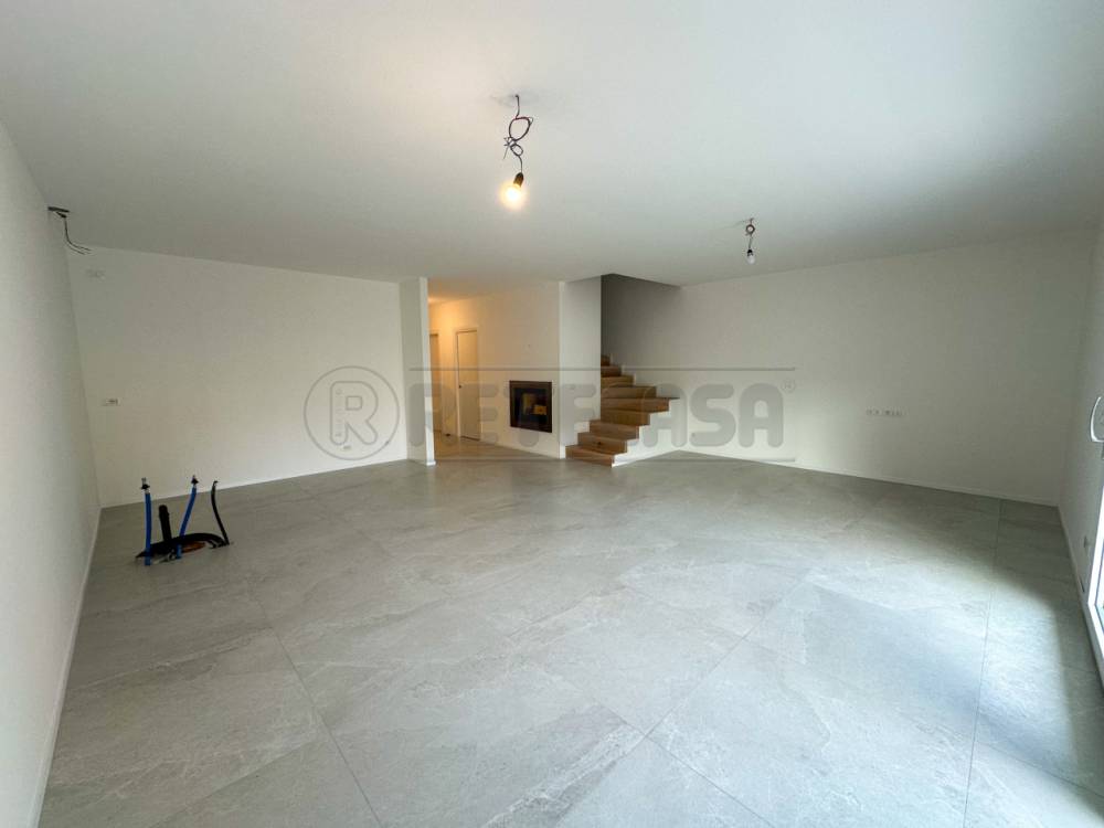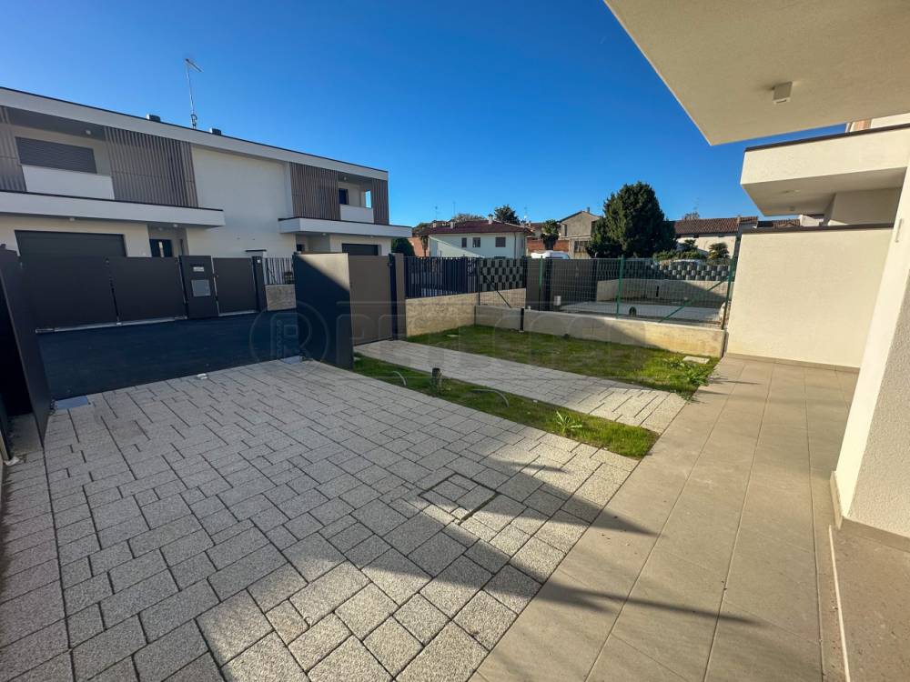 FIUMICELLO-VILLA VICENTINA: Sogni una casa nuova, moderna sotto l'aspetto energetico, ma anche progettuale e la vuoi anche subito? Abbiamo quello che fa per te!! A Fiumicello, proprio a due passi dalla chiesa di San Valentino e dalla Piazza del Municipio, ti proponiamo una villa a schiera ampia e luminosa, con una superficie di circa 185 mq commerciali distribuiti su due livelli, progettata con la massima cura per garantire un ambiente di vita sereno e confortevole. L'ingresso alla villetta, avviene tramite strada privata. La vettura può essere parcheggiata all'interno dell'autorimessa con basculante elettrico oppure lasciata esternamente, all'interno della proprietà. L'accesso pedonale conduce al grande soggiorno di forma regolare, con cucina progettata con isola centrale e uscita sul secondo giardino che offre la privacy necessaria. Il soggiorno è impreziosito da un elegante caminetto, già installato e pronto all'utilizzo. Al piano terra si trova anche il primo bagno completo e finestrato e un comodo ripostiglio. Il primo piano è progettato per garantire spazi comodi e ben organizzati, infatti non troverai da nessuna parte una casa nuova con tre camere matrimoniali e ben due ripostigli! Dalla matrimoniale si accede alla prima terrazza, leggermente più piccola rispetto a quella a servizio delle altre due camere. Il bagno è ambio e ben organizzato con una doccia spaziosa e moderna. Esternamente la proprietà è completamente recintata, con impianto di irrigazione automatico per mantenere rigoglioso il verde dei giardini. La pompa di calore e l'impiantistica di supporto per il fotovoltaico sono posizionati esternamente, in un vano dedicato, all'interno del quale si trovano anche gli attacchi per la lavatrice e l'asciugatrice. A lato del basculante del garage si trova anche, per chi è già dotato o sta pensando all'acquisto, la predisposizione per la colonnina di ricarica elettrica dell'autovettura. Classe energetica altissima, garantita dal sistema costruttivo Cllimablock della Pontarolo Engineering, con isolamento interno di 6cm, pareti dello spessore di 16cm, ulteriore isolamento esterno di 9cm e sottostante basamento dotato di intercapedine aerata. Il riscaldamento dell'immobile avviene tramite impianto radiante a pavimento con pompa di calore, affiancata ad un impianto fotovoltaico da 6 kW. La costruzione si contraddistingue anche per l'utilizzo di materiali pregiati e di finiture di alta qualità, insomma hai tutto quello di cui hai bisogno! Non aspettare oltre, chiamaci subito per fissare il tuo appuntamento, vivi il sogno della casa perfetta e scopri come il comfort e la tranquillità si fondono in un’esperienza unica! La descrizione dell’immobile, la planimetria riqualificata e le metrature riportate non costituiscono elementi contrattuali ma sono solo indicativi.