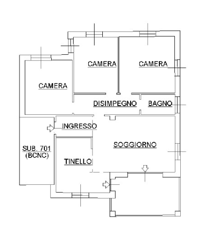 L'immobile è cosi composto: ingresso, soggiorno, tinello, disimpegno, tre camere, bagno e terrazzo al piano secondo.