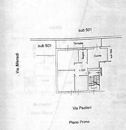 L'immobile è posto al primo piano ed è composto da tre vani oltre disimpegno, cucina, bagno ed un terrazzo tergale.