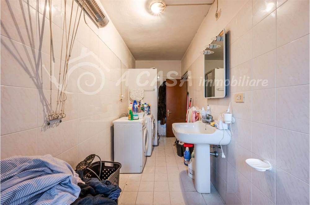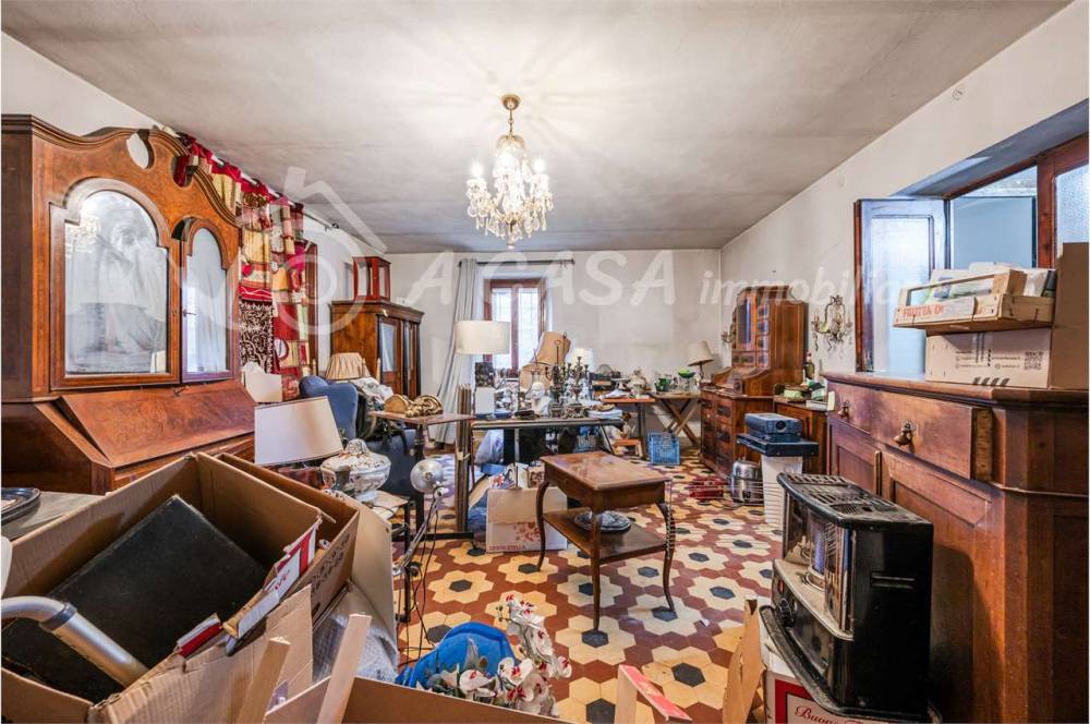La soluzione posta in centro al paese è attualmente suddivisa in due unità immobiliari ciascuna di circa 350mq, oltre a tre unità garage di circa 90mq e due unità adibite a cantine nel seminterrato di oltre 50mq.