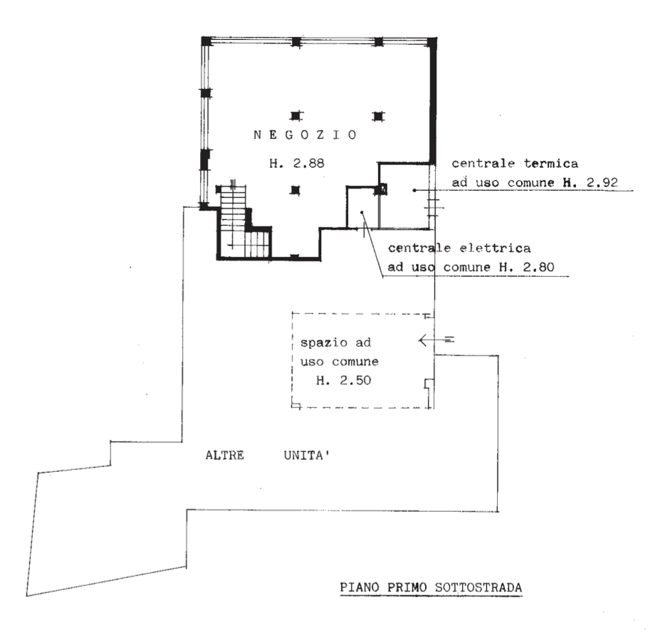 Negozio al piano terra e primo sottostrada sito a Cadoneghe (PD) in piazzale Castagnara, per una superficie commerciale complessiva di 422 metri quadrati.
