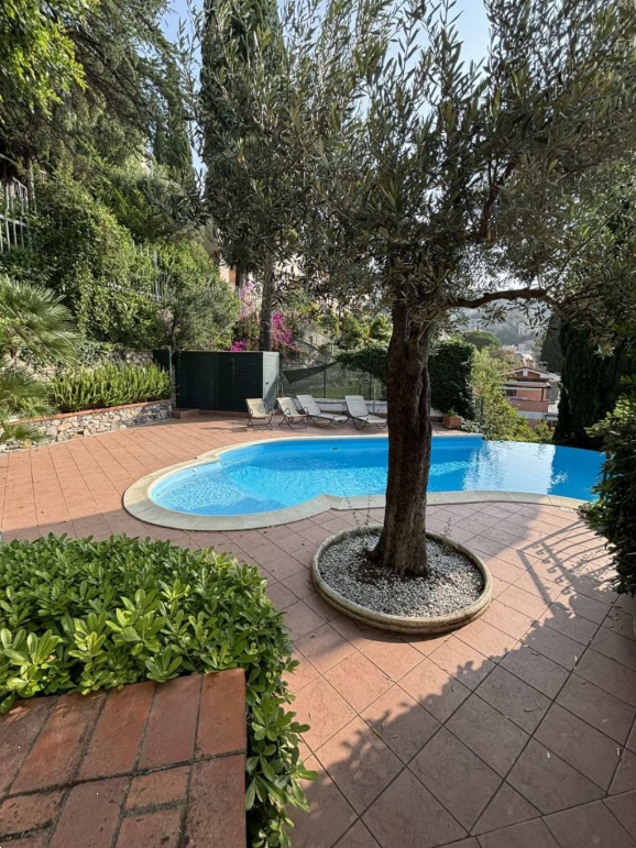Appartamento al p.t. situato ad Alassio (SV), si trova in posizione panoramica sul mare e le finiture sono di pregio, all'interno del lotto di giardino esclusivo troviamo anche una piscina e il posto auto coperto. La casa internamente è composta da un ingresso, un soggiorno, una cucina, una sala da pranzo, quattro camere da letto (di cui una con cabina armadio) e due bagni.