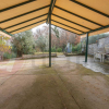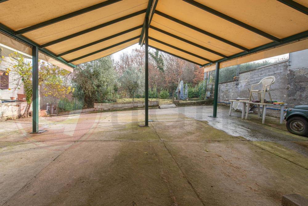 Il giardino intorno alla Villa è recintato, una volta superato il cancello automatico, tramite il comodo vialetto in cemento, si può accedere alle due aree di parcheggio, una coperta con tettoia in legno e l'altra scoperta, adiacente l'ingresso.