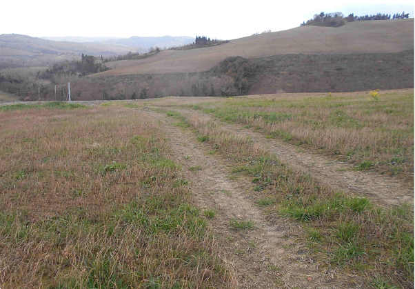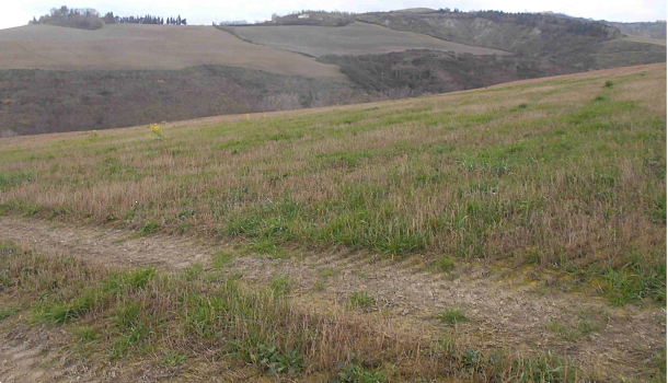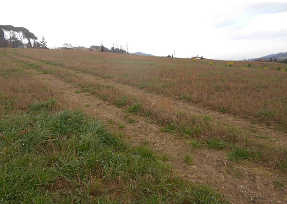 Terreno a Montecalvo in Foglia (PU), in via Seriole, frazione Borgo Massano. Facilmente accessibile dalla strada e privo di recinzioni, attualmente coltivato a erba medica e si estende per una superficie di 7.665 mq.