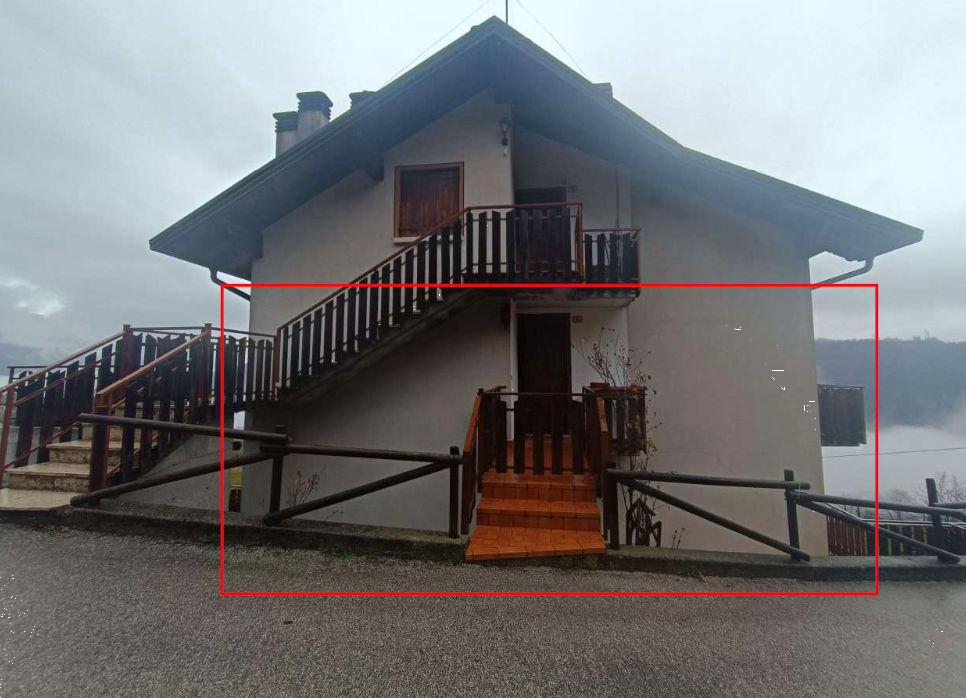 Appartamento al piano terra con annessa autorimessa al piano sottostrada situato ad Enego (VI) in via Fosse di Sopra, composto da un ingresso, una cucina, soggiorno, bagno, due camere da letto ed un poggiolo; al piano sottostrada una cantina e centrale termica.