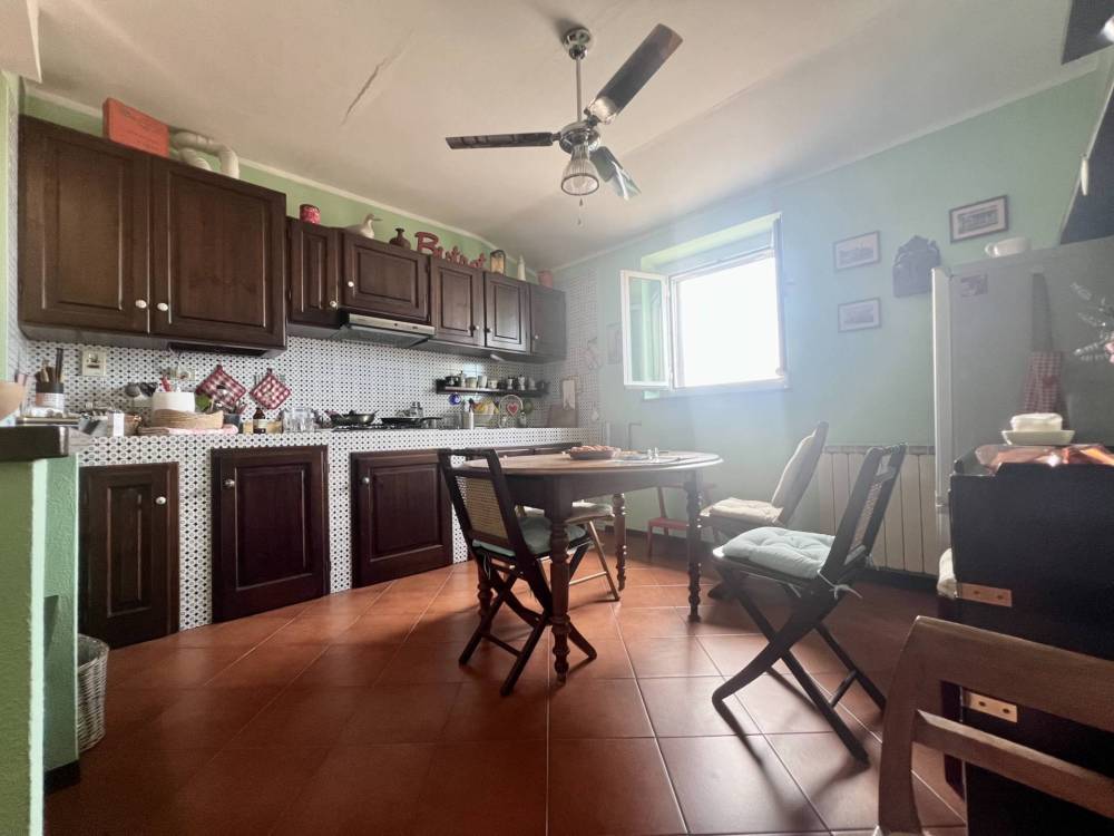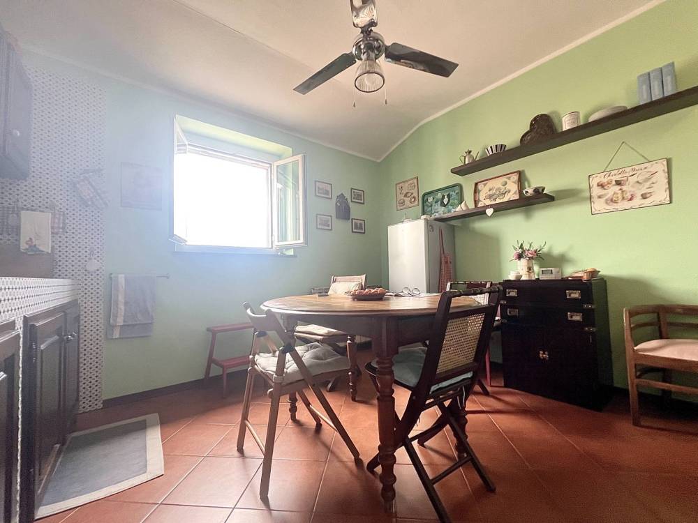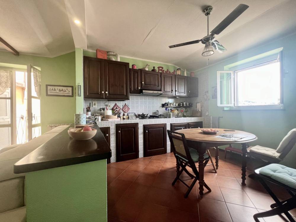 L'ingresso si apre su un'ampia zona giorno con cucina a vista, organizzata in salotto e sala da pranzo, con bagno finestrato al piano, dotato di box doccia e recentemente ristrutturato, nonché balconcino e finestra affacciata sull'orizzonte.