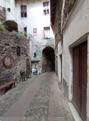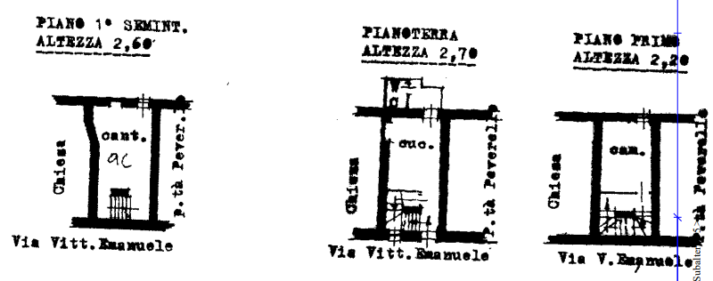 Appartamento che si affaccia sulla strada pedonale, via Vittorio Emanuele, si sviluppa su cinque livelli; seminterrato, piano terra, piano primo, secondo, e terzo (sottotetto) collegati da una scala interna posta dietro il muro della facciata su strada.
