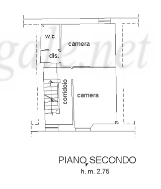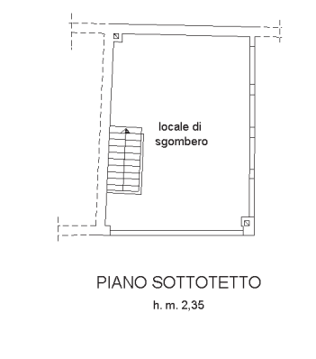 L'appartamento è composto di tre piani: piano primo, piano secondo e piano sottotetto con accesso diretto dalla strada e scala interna di collegamento ai piani.