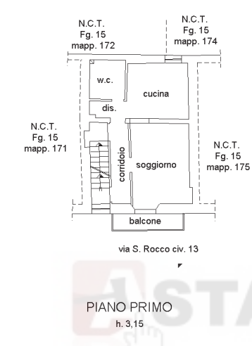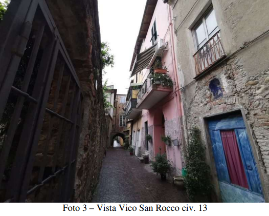 L'Asset è composto da quattro vani e due servizi, come di seguito: al piano primo vi è il soggiorno con cucina, bagno e balcone con vista su Vico San Rocco, al piano secondo due camere con servizi ed al piano sottotetto un locale di sgombero a loggia.