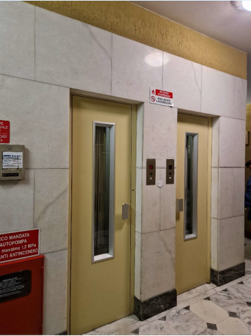 L'accesso avviene dal portone posto sull'ampia area privata laterale a Via Canevari protetta da sbarra per l'accesso veicolare.