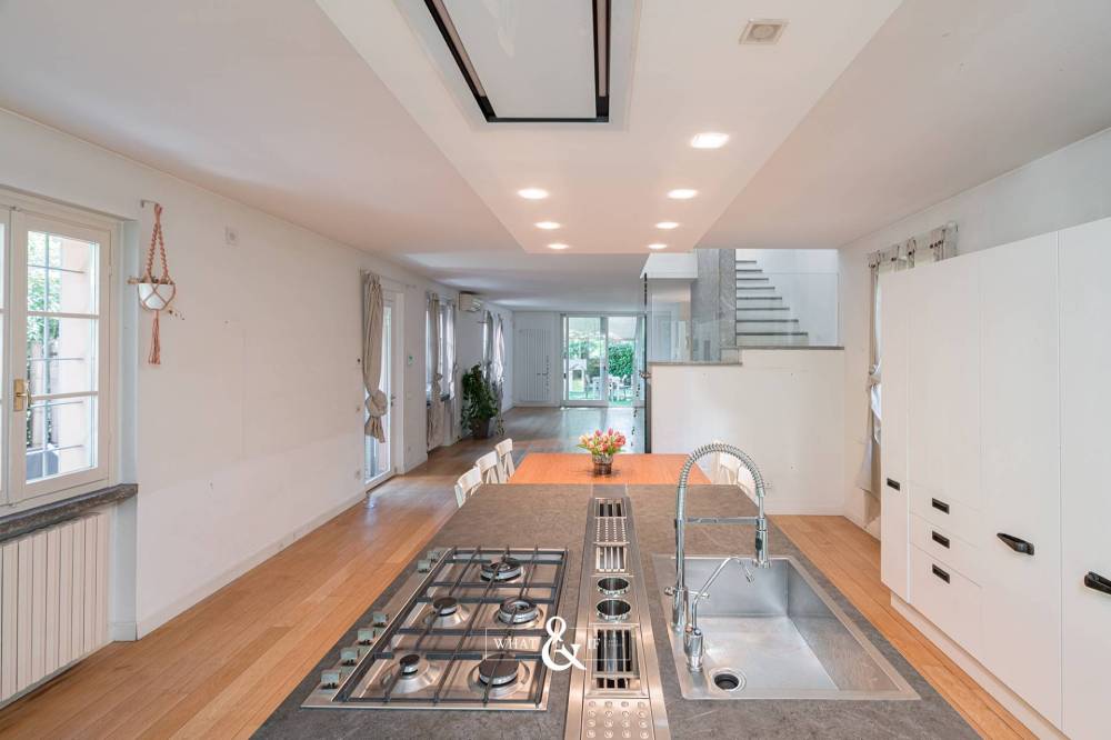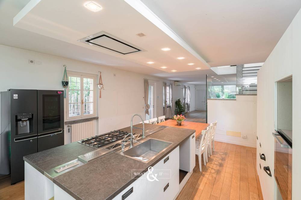 Monza Parco / Musicisti - in elegante e riservato contesto condominiale di sole cinque unità, proponiamo in vendita villa singola con area esterna ad uso esclusivo. Disposta su due livelli oltre piano interrato, è composta da ampio open space al piano terra, zona notte al piano primo e taverna con locali accessori al piano interrato; il tutto collegato da comoda scala interna a vista. La zona living al piano terra è un unico grande spazio composto dal soggiorno e dalla grande cucina a vista dotata di arredi e di isola centrale; le numerose finestre, su tre lati del perimetro, creano una calda atmosfera grazie alla luce naturale. Una spaziosa veranda, in continuità con la cucina, conduce alla porzione del giardino sul retro. Larea esterna è accessibile da tutte le zone del piano terra. Al piano primo troviamo la camera matrimoniale con cabina armadio a vista e un bagno en-suite dotato di doppia doccia. Due grandi portefinestre garantiscono una splendida luce sin dalle prime ore del mattino. Presenti altre due camere ed un ulteriore bagno con vasca. Al piano interrato, ampia taverna con locali accessori e lavanderia, ideale per locale hobby, zona studio, area cinema etc. Finiture di pregio, pavimentazione in parquet, porte Rimadesio e dettagli esterni come i mattoncini a vista che richiamano agli antichi fienili; gli spazi verdi del complesso e la posizione interna consentono un completo isolamento dal contesto urbano. L'abitazione è stata completamente ristrutturata nel 2009; è termoautonoma e dotata di aria condizionata. Parzialmente arredata, se gradito. Completa la proprietà un'autorimessa tripla al piano interrato (valore addizionale pari a 85.000). Mandato in co-esclusiva con Studio Stilo.