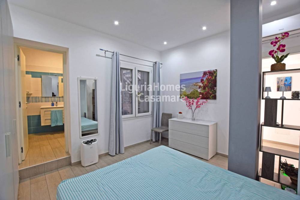 Lappartamento in vendita, completamente ristrutturato e finemente arredato, si distingue per ambienti curati e ben organizzati. La proprietà è composta da un luminoso soggiorno con cucina a vista, una camera matrimoniale con bagno en suite, una seconda camera e un ulteriore bagno. Lampio terrazzo rappresenta il vero valore aggiunto, offrendo una piacevole vista sul mare e sulla cittadina, perfetta per momenti di relax allaperto in ogni stagione. Posto auto.