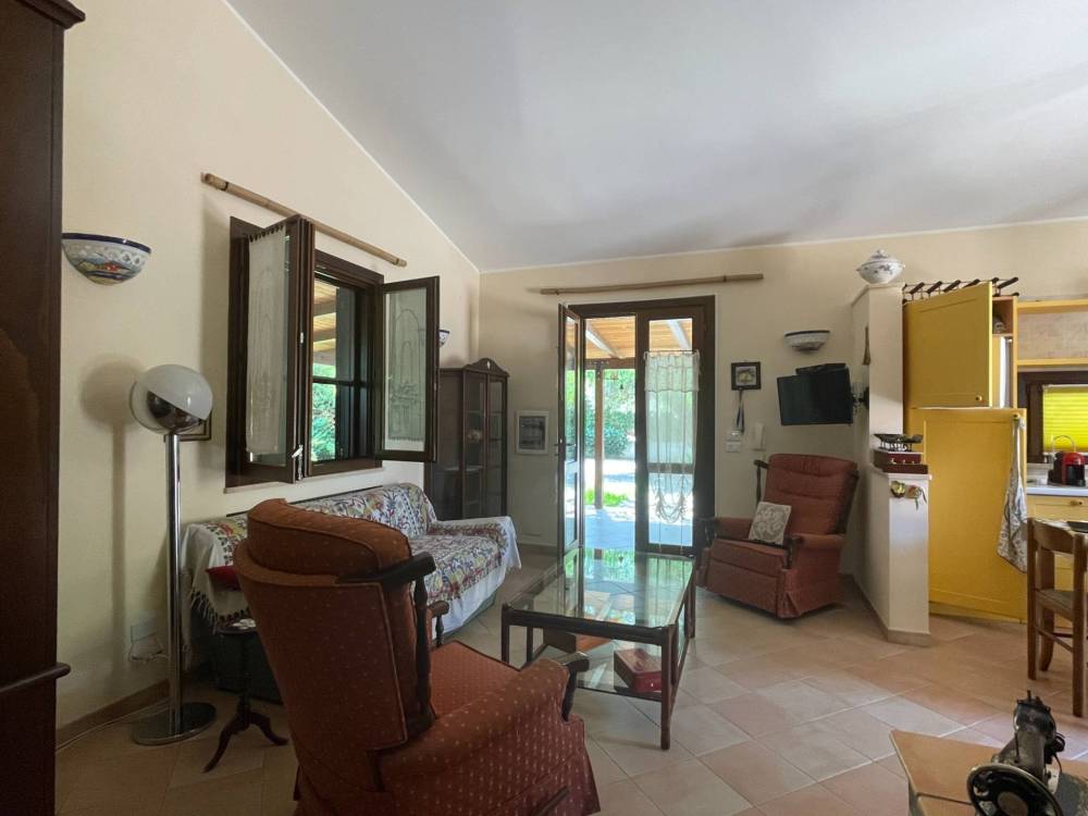 Allinterno troviamo una zona giorno con angolo cottura, due camere da letto, un bagno con doccia e un secondo bagno con lavanderia. La villa è molto luminosa grazie alla quadrupla esposizione ed è in ottime condizioni. Gli infissi sono in PVC con vetrocamera allesterno e in legno allinterno. Gli impianti sono a norma.
