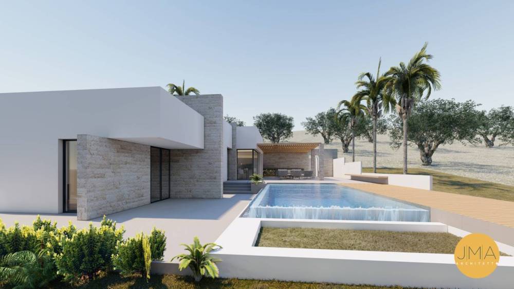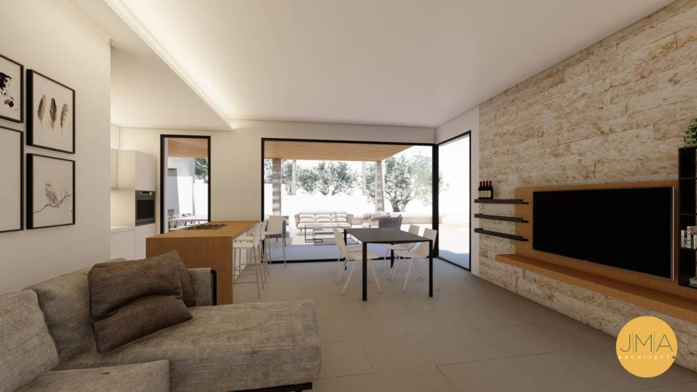 La villa si compone di una accogliente cucina/soggiorno con annesso pergolato esterno, un pratico disimpegno, un bagno e un patio. La zona notte offre un accogliente disimpegno che conduce a due camere da letto, una camera matrimoniale con veranda privata e un bagno per garantire il massimo comfort. Lo spazio esterno sarà accuratamente curato con ampi spazi verdi, una piscina, unarea parcheggio e un ingresso dotato di cancello automatico per la massima comodità e sicurezza.