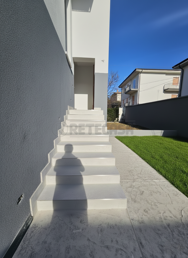 VICENZA EST: cerchi il perfetto equilibrio tra il fascino dei grandi spazi di una volta e l'efficienza tecnologica moderna? Alle porte di Vicenza, in una posizione interna e riparata dal traffico, ma allo stesso tempo comodissima a tutti i servizi, proponiamo un esclusivo intervento di ristrutturazione completa. Due porzioni di bifamiliare totalmente indipendenti, riqualificate con standard antisismici e dotate delle migliori tecnologie per il risparmio energetico. Punti di Forza: • Indipendenza Totale: Accessi pedonali e carrai privati per ogni unità. • Efficienza Massima: Classe Energetica A4 (zero gas, bassi consumi). • Spazi Esterni: Giardino esclusivo su 3 lati e terrazza con predisposizione pompeiana. • Comfort Acustico: Isolamento certificato per la massima privacy. Caratteristiche Tecniche d’Eccellenza: ogni abitazione verrà consegnata dotata di • Impianto fotovoltaico da 6 kW autonomo. • Riscaldamento a pavimento con pompa di calore (anche in taverna) e VMC (Ventilazione Meccanica Controllata). • Cappotto esterno da 14 cm e serramenti in PVC con triplo vetro basso emissivo. • Tapparelle elettriche, basculante motorizzato e 5 predisposizioni per il climatizzatore. Distribuzione degli Spazi: ogni unità dispone di un ampio garage (con zona lavanderia tecnica) e di una splendida taverna riscaldata con canna fumaria. Il grande serramento della taverna si apre su una terrazza piastrellata di 16 mq, ideale per pranzi all'aperto sotto una pompeiana, immersi nel giardino privato di 124 mq. Piano Primo (Unità A) o Secondo (Unità B): l’abitazione L'ampia zona giorno è splendidamente illuminata grazie a grandi vetrate e affaccia su un terrazzo abitabile coperto ed è composto da un ampio open space moderno con soggiorno e area pranzo, mentre la zona notte è composta da camere spaziose (Matrimoniale, Doppia e Singola). Sono presenti doppi servizi finestrati e pratico ripostiglio/lavanderia. Dettaglio Superfici Unità A Unità B Mq Commerciali 191 mq 192 mq Mq Calpestabili 125 mq 116,5 mq Giardino 124 mq 124 mq Camere / Bagni 3 / 2 3 / 2 In questa fase è ancora possibile scegliere le finiture interne per cucire la casa su misura per le tue esigenze. Contattaci per fissare un appuntamento e scoprire come questa casa può cambiare la qualità della tua vita. Nessuna spesa di agenzia! € 445.000 (FSTbifV01) MQ COMMERCIALI UNITA’ A = 191 MQ MQ CALPESTABILI SPAZI ABITATIVI = 125 MQ Piano terra INGRESSO = 12 MQ DISIMPEGNO = 2 MQ TAVERNA = 20 MQ GARAGE = 21 MQ TERRAZZA PER UNA POMPEIANA = 16 MQ POSTO AUTO = 15 MQ GIARDINO = 124 MQ Piano primo ANG. COTT./SOGGIORNO = 34,5 MQ TERRAZZA COPERTA = 5 MQ DISIMPEGNO = 2,5 MQ RIPOSTIGLIO/LAVANDERIA = 2,5 MQ BAGNO 1 = 5 MQ CAMERA SINGOLA = 10,5 MQ DISIMPEGNO = 3 MQ CAMERA MATRIMONIALE = 16 MQ CAMERA DOPPIA = 12 MQ BAGNO = 5 MQ MQ COMMERCIALI UNITA’ B = 192 MQ MQ CALPESTABILI SPAZI ABITATIVI = 116,5 MQ Piano terra DISIMPEGNO = 7 MQ TAVERNA = 20 MQ GARAGE = 23 MQ TERRAZZA PER UNA POMPEIANA = 16 MQ POSTO AUTO = 15 MQ GIARDINO = 124 MQ Piano secondo ANG. COTT./SOGGIORNO = 37 MQ TERRAZZA COPERTA = 5 MQ DISIMPEGNO = 2 MQ RIPOSTIGLIO/LAVANDERIA = 2 MQ BAGNO 1 = 4,5 MQ CAMERA DOPPIA = 12,5 MQ TERRAZZA = 2 MQ DISIMPEGNO = 3,5 MQ CAMERA MATRIMONIALE = 15 MQ TERRAZZA = 2 MQ CAMERA DOPPIA = 13 MQ BAGNO = 7 MQ