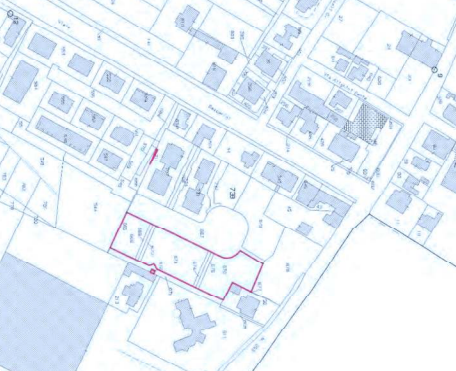 Nove terreni edificabili inseriti in un contesto già urbanizzato con la presenza di strade e marciapiedi.