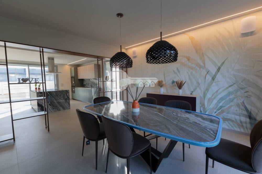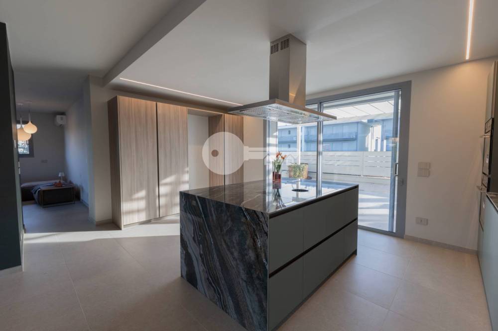 Al piano terra, troviamo la sala da pranzo, finemente arredata con forniture di prima scelta, una magnifica cucina con isola e armadiatura su misura adibita a dispensa, uno splendido antibagno e un bagno dotato di ampia doccia.