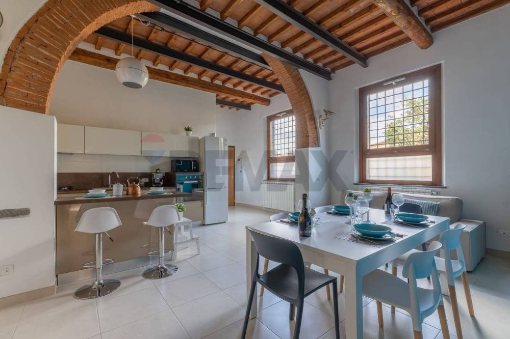In the vibrant heart of Campi Bisenzio, in a strategic location, I present a magnificent apartment born from the skillful renovation of a historic farmhouse. Here, the rustic style is the protagonist: exposed beams, terracotta floors, and fine finishes that tell a story, while simultaneously offering the comfort and efficiency your family deserves.