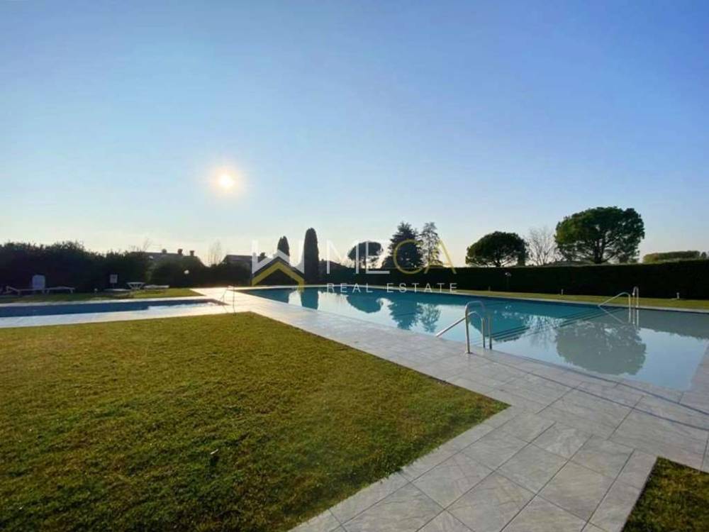Moniga del Garda, in posizione molto soleggiata e vicino al lago ed al porto, trilocale inserito in residence con piscina di dimensioni ampie e appena ristrutturata.