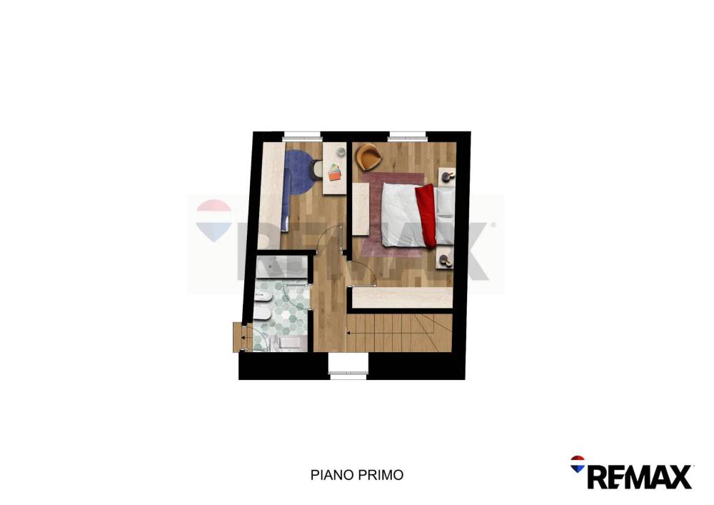 Lunità è composta da soggiorno con cucina open space con accesso al balcone, scala interna che collega il piano superiore dove si trovano due camere da letto ed un bagno.