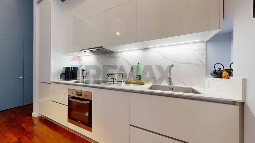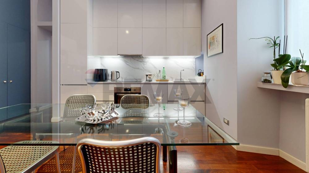 Limmobile presenta una distribuzione razionale e funzionale degli spazi ed è composto da ingresso, luminoso soggiorno con cucina a vista e arredi su misura, camera matrimoniale, camera singola, doppi servizi di cui uno en suite, due balconi e comodi ripostigli.