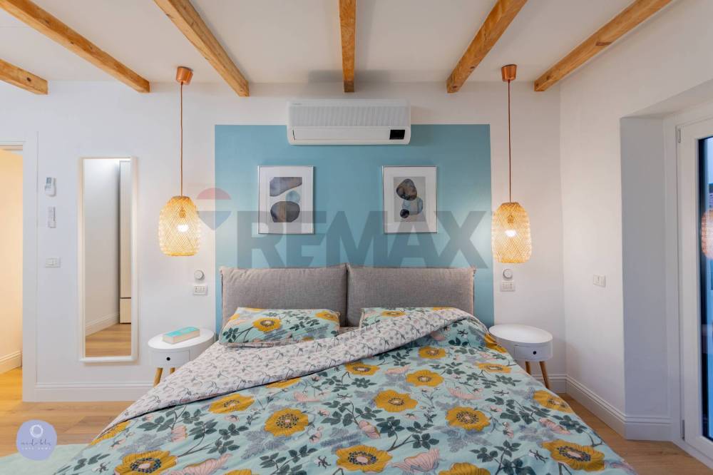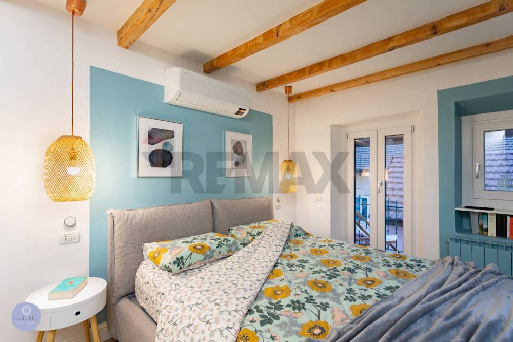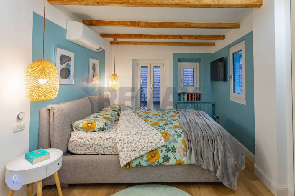 Si tratta di un attico su due livelli elegantemente ristrutturato nel 2020 grazie al sapiente intervento di due architetti.