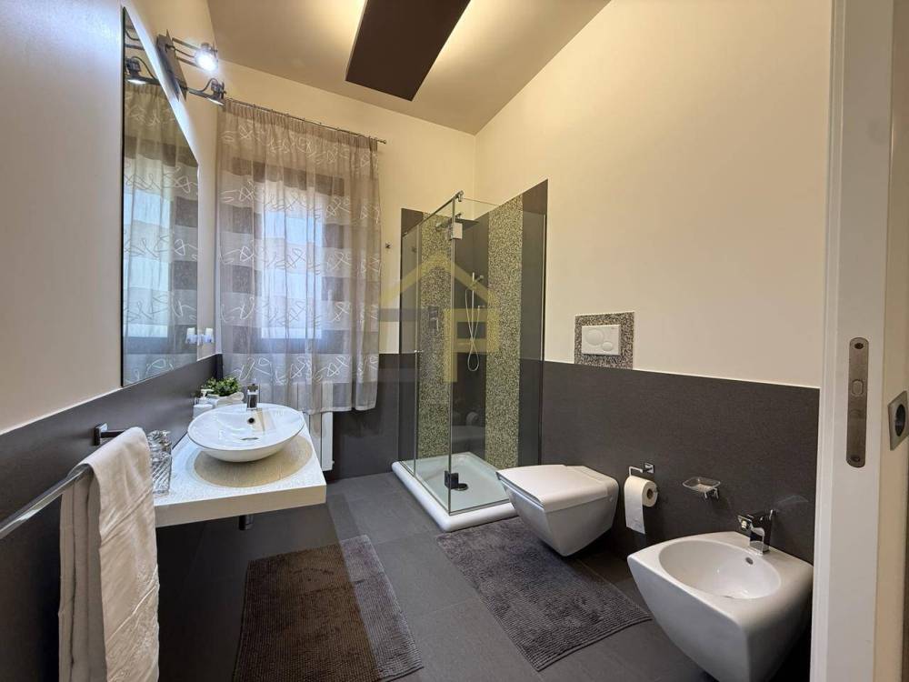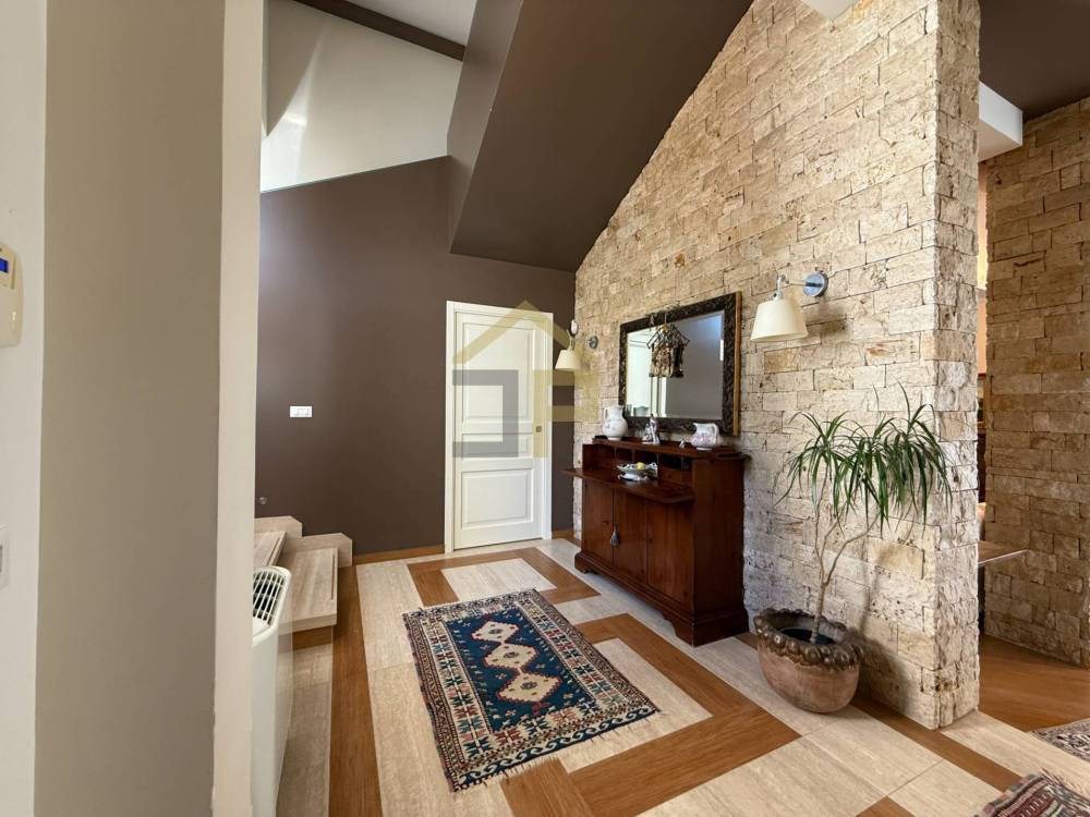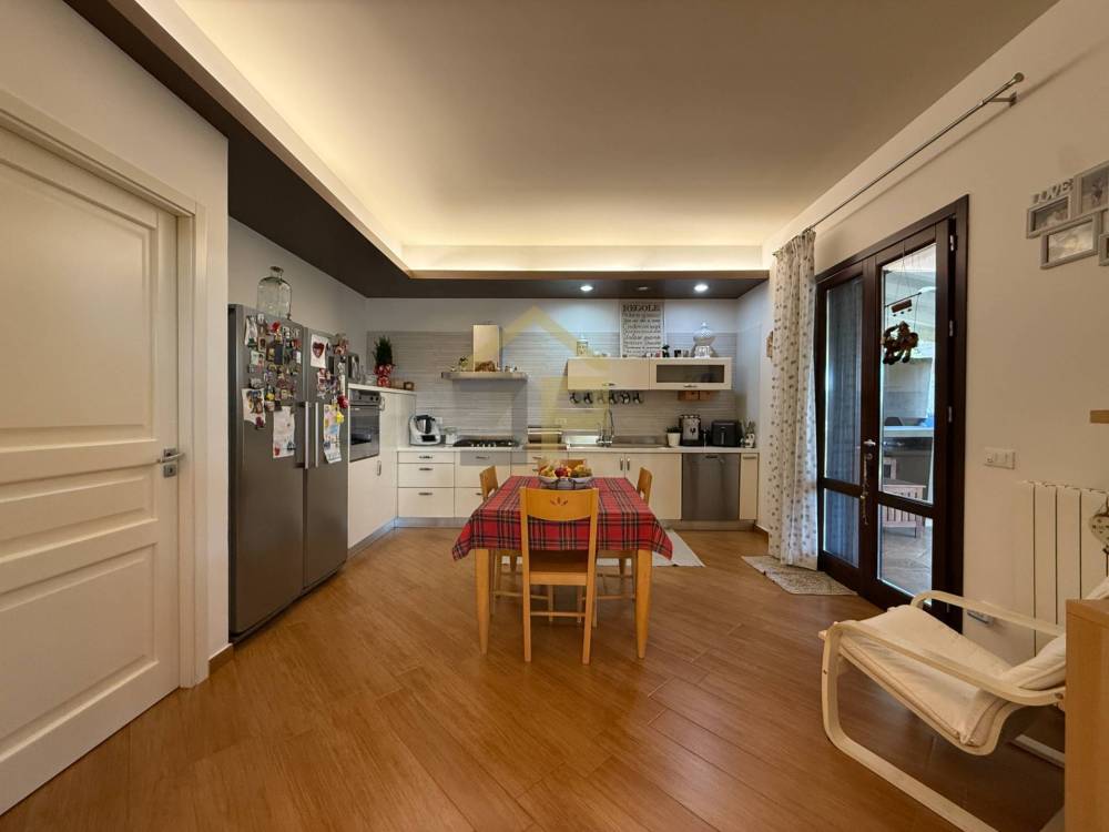 Il piano terra si presenta con ingresso che ci conduce a un elegante e spazioso salone, impreziosito da unampia vetrata che garantisce grande luminosità e un naturale collegamento con il verde esterno. Adiacente al soggiorno si trova unampia cucina, collegata allo stesso tramite porta scorrevole, con comodo ripostiglio annesso e accesso diretto alla veranda, ideale per vivere appieno gli spazi esterni e pranzi allaperto.