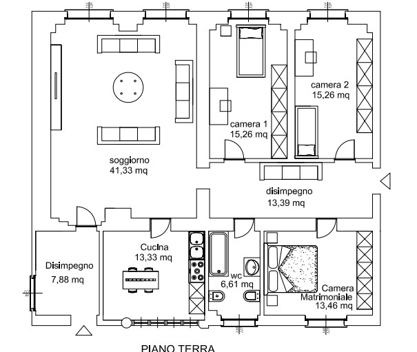 L'immobile è composto da: disimpegno all'ingresso, cucina,