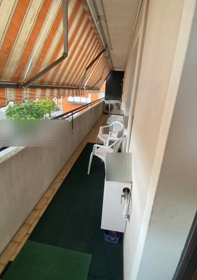 ripostiglio e due bagni. Dal soggiorno e dalle camere da letto si accede ad un terrazzo che si sviluppa per tutta la lunghezza del fronte dell'appartamento.
