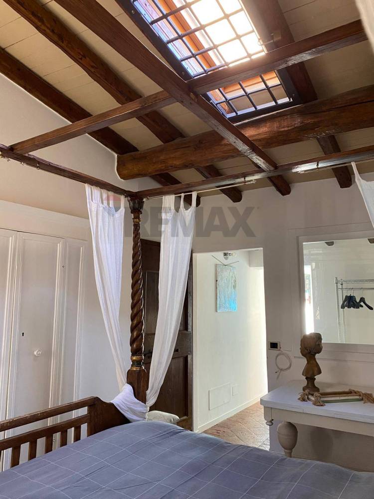 camera matrimoniale, bagno. il pavimento, un pregiato cotto d'epoca, è omogeneo in tutti gli ambienti.