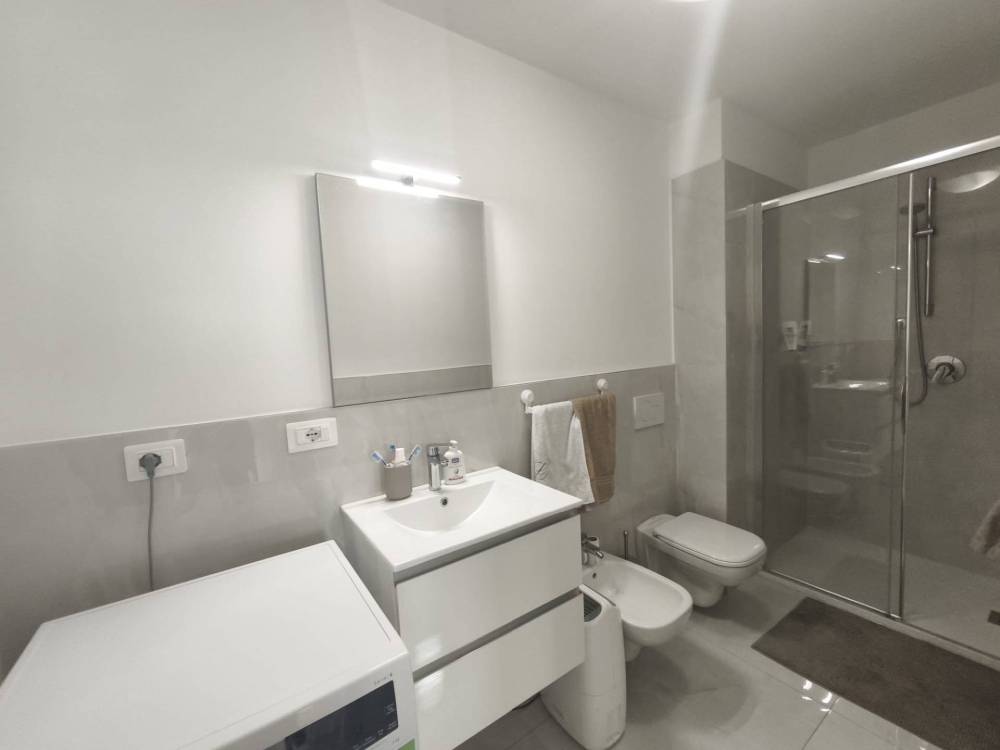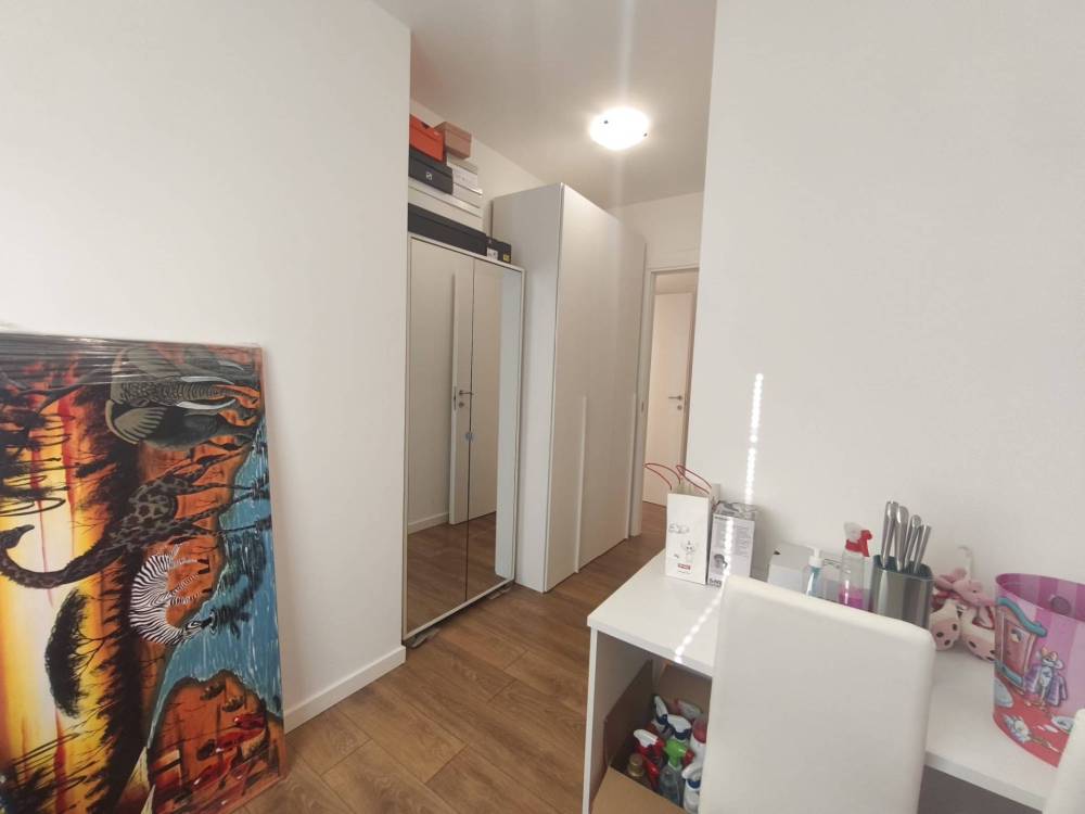 Un disimpegno conduce alla camera matrimoniale, ampia e luminosa, a un secondo locale versatile utilizzabile come cameretta, studio, guardaroba o cabina armadio, e al bagno con box doccia.