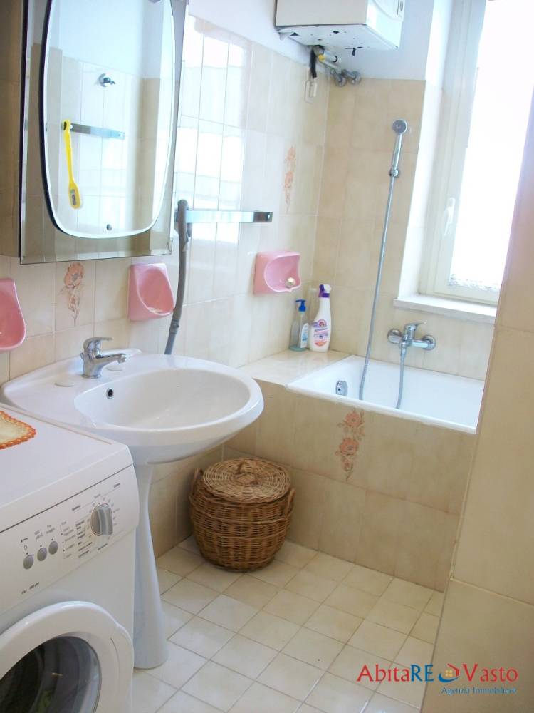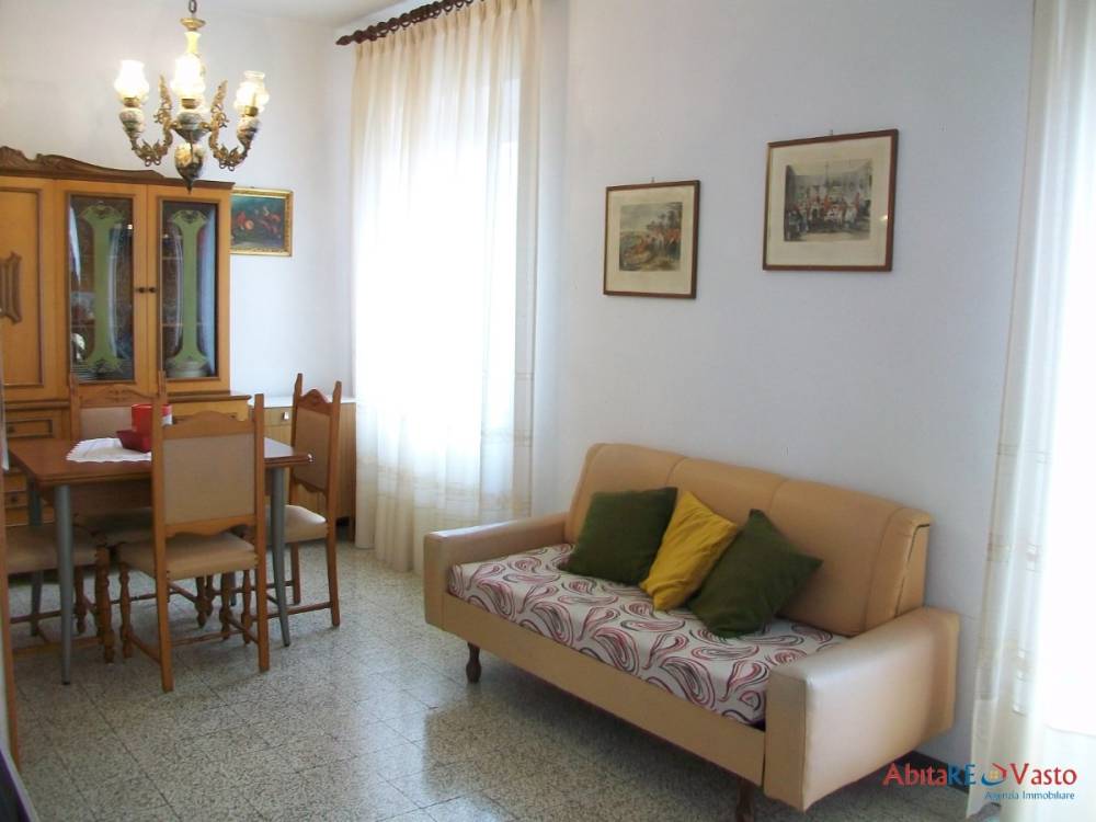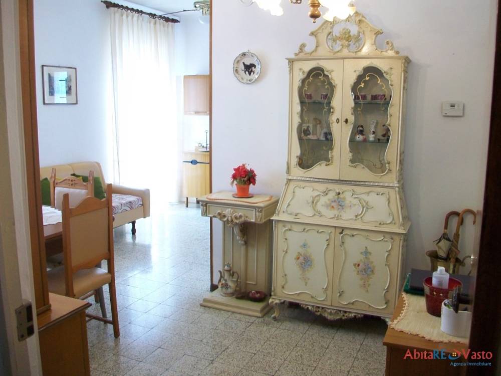 Pollutri (CH). A circa 16 Km dal centro abitato di Vasto, in uno dei comuni meglio serviti del comprensorio, proponiamo in vendita esclusiva un appartamento all'interno di una piccola palazzina degli anni '60, con sole 4 unità abitative, in posizione centrale e così composto: ingresso in comoda e luminosa zona giorno con cucina a vista e balconcino, disimpegno, 2 camere da letto matrimoniali, bagno con vasca e servizi. La proprietà si completa con una cantina privata al piano semi-interrato di circa 13 mq e di una piccola porzione di terreno antistante l'ingresso condominiale con una superficie di circa 15 mq. Immobile termo-autonomo, in buono stato generale, con doppi infissi in tutte le finestre, ben esposto e con costi di gestione condominiali molto bassi. Libero e visitabile da subito.