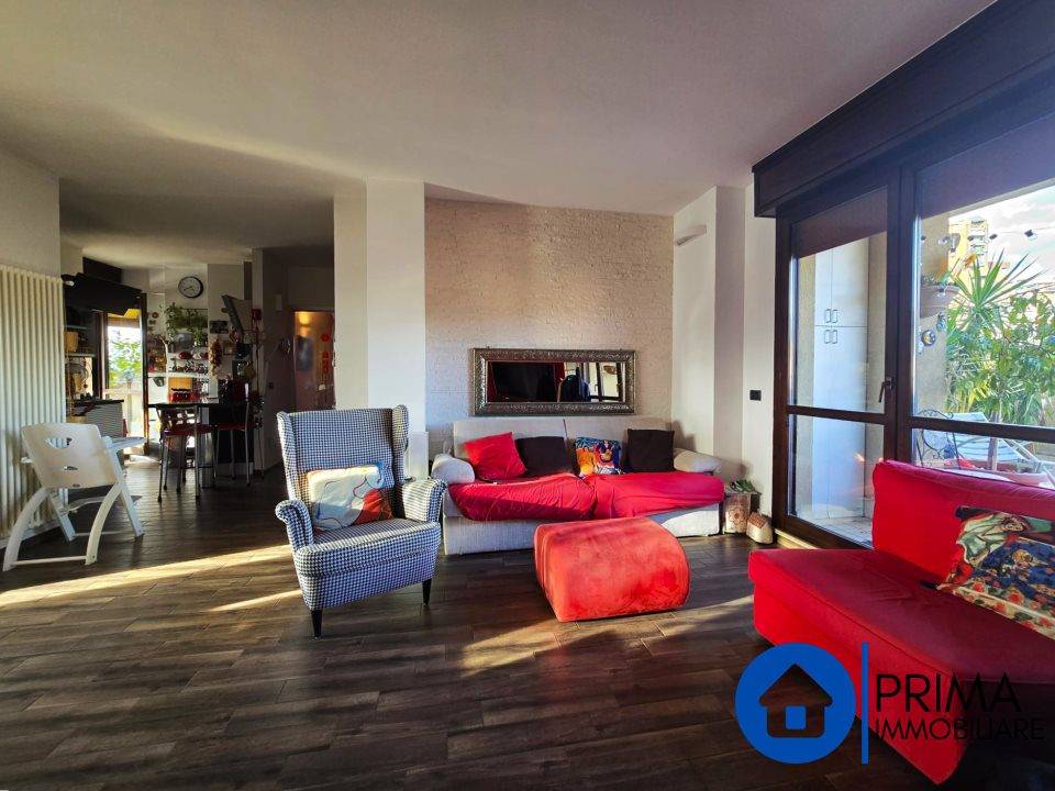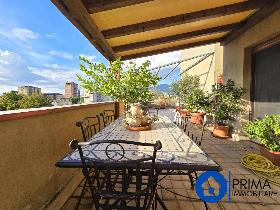 Particolare, coloratissimo e dalla grande personalità! Questo appartamento è unico in tutto e per tutto, dai dettagli unici e vivaci ai meravigliosi terrazzi panoramici.nL'appartamento che vi proponiamo si trova al piano medio di un palazzo edificato nei primi anni 2000, antisismico, termo autonomo e dotato di doppio ascensore.nEntriamo nella proprietà dal portoncino blindato e si apre davanti ai nostri occhi una bellissima zona giorno con grandi vetrate scorrevoli sulla destra e sulla sinistra che portano a due differenti terrazzi abitabili dalla straordinaria metratura rispettivamente affacciati ad est e a ovest, in uno dei quali è stata create una piccola sun room e una zona ombreggiata con tettoia dove poter mangiare all'aria aperta. nOltre ad un'ariosa zona living dove rilassarsi e vedere film e mangiare con gli amici troviamo una moderna cucina con penisola anch'essa con porta finestra al terrazzo.nLa zona notte rimane sapientemente divisa dalla zona giorno grazie ad un disimpegno al quale si accede da una particolare porta in vetro murano scorrevole, qui troviamo 3 camere da letto matrimoniali e due bagni, entrambi con finestra e con doccia. nL'immobile è stato totalmente ristrutturato 10 anni fa ca., troviamo split per l'aria condizionata in tutta l'abitazione, un pavimento moderno effetto legno omogeneo in tutta la casa, eleganti porte a filo muro dai colori intensi e i bagni totalmente rinnovati co rivestimenti e sanitari dal taglio contemporaneo.nLa proprietà è completa di cantina e posto auto condominiale.nL'immobile è perfetto per famiglie che stanno cercando una soluzione dal carattere deciso, che offra spazi ampi da vivere, dove accogliere familiari e amici e divertirsi sui grandi terrazzi.nLa zona è comoda per raggiungere il centro in pochi minuti, i servizi sono vicini come poste, tabaccheria, rosticceria, supermercato e fermate dell'autobus.nContattaci e fissa una visita, una casa così non si trova tutti i giorni!n - Maggiori Dettagli: Porta blindata, Videocitofono, Cantina