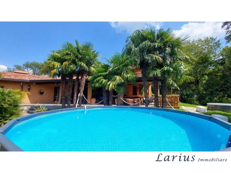 A soli 5 minuti dal Golf Club Lecco, situata all'interno del piccolo e tranquillo Comune di Cesana Brianza ed a pochi passi dai principali servizi e raccordi stradali (SS36 Milano - Lecco), sorge questa fantastica villa singola denominata and quot;Villa Pusiana and quot;. Questa caratteristica soluzione abitativa è ubicata all'interno di signorile ed elegante contesto immerso nel verde: la proprietà, posta in posizione collinare e panoramica rappresenta un'elegante fusione tra stile rustico e contemporaneo, ideale per chi cerca una casa con carattere e privacy. La villa, edificata agli inizi degli anni '70, è stata oggetto di totale ed importante ristrutturazione nell'anno 2000(completata nel 2001): disposta su tre livelli abitativi, sviluppa una superficie commerciale di mq 525. E' composta da ampio portico d'ingresso, soggiorno con sala da pranzo e zona camino dedicata (con antistante piccolo terrazzo), cucina (con portico), locale guardaroba (adibito a camera da letto), locale studio, bagno e lavanderia al piano terra, tre camere, tre bagni, balcone e portico al piano primo. Il tutto completato da spazioso locale hobby al piano primo sottostrada. La stessa, gode inoltre di ottima esposizione solare e vista panoramica ed è dotata di eccellenti finiture interne: pavimentazione in cotto e legno pregiato, infissi in alluminio doppio vetro completi di persiane ed inferriate di sicurezza, portoncino blindato, sanitari sospesi, impianto antifurto perimetrale e volumetrico, impianto tv satellitare e connessione internet cablata. Il locale hobby, situato al piano primo sottostrada, è stato invece allestito a piccola palestra attrezzata con zona massaggi completata da sauna finlandese, doccia con cromoterapia e vasca idromassaggio. L'impianto di riscaldamento è autonomo con pannelli radianti a pavimento alimentati a metano (impostato a zona con termostati separati regolabili sui tre livelli abitativi) integrato da impianto di climatizzazione con pompa di calore caldo/freddo. Sono inoltre presenti camino a legna e stufa a pellet rispettivamente ai piani terra e primo. A completamento vano cantina al piano terra ed ampio vano autorimessa di mq 46 al piano primo sottostrada. La proprietà è circondata da ampio e pianeggiante giardino piantumato e cintato mq 4000 circa completato da confortevole viale interno alberato e pavimentato in ciottolato ed autobloccanti. La stessa, dispone inoltre di altro terreno di proprietà (in aderenza a quello cintato) di mq 7000 circa adibito in parte a prato ed in parte a bosco ceduo. L'area strettamente pertinenziale alla villa è inoltre corredata da putting green con bunker in sabbia, impianto di irrigazione, predisposizione pannelli solari e predisposizione per l'installazione di una piscina di media dimensione (la precedente è stata al momento rimossa) e di piccola vasca idromassaggio (vedi foto). Il bene gode di una sua personalità importante soprattutto per l'ampiezza degli spazi interni. E' stata fino a poco tempo fa adibita anche a struttura ricettiva B and B (in qualsiasi momento riattivabile) con camere personalizzate dotate dei massimi comfort. E' un luogo ideale per vivere a stretto contatto con la natura e per accogliere un nucleo famigliare numeroso. E' un'ideale prima casa ed un pregevole luogo di villeggiatura. La disponibilità dell'immobile è immediata. - Maggiori Dettagli: Studio, Porte in legno, Lavanderia, Cantina, Locale hobby, Portico, Piscina, Cancello automatico, Sistema di allarme, Impianto satellitare, Impianto di condizionamento, Camino, Sanitari sospesi, Parquet zona notte, Infissi alluminio doppio vetro, Persiane in legno, Porta blindata, Vista panoramica , Fermata bus nelle immediate vicinanze, Servizi di primaria necessità nelle vicinanze