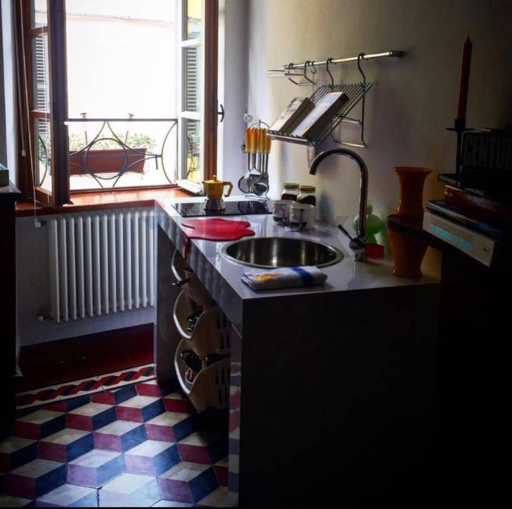 L'immobile, situato al secondo piano, è armoniosamente distribuito negli spazi tra zona living con camino,che affaccia sulla via, cucina a vista, camera matrimoniale e bagno. Il pavimento, un pregiato cotto d'epoca, è omogeneo in tutti gli ambienti.