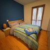 La zona notte offre una camera matrimoniale con accesso al balcone e splendida vista sulla Presolana, una seconda camera con uscita su un terzo balcone e un bagno finestrato con doccia.