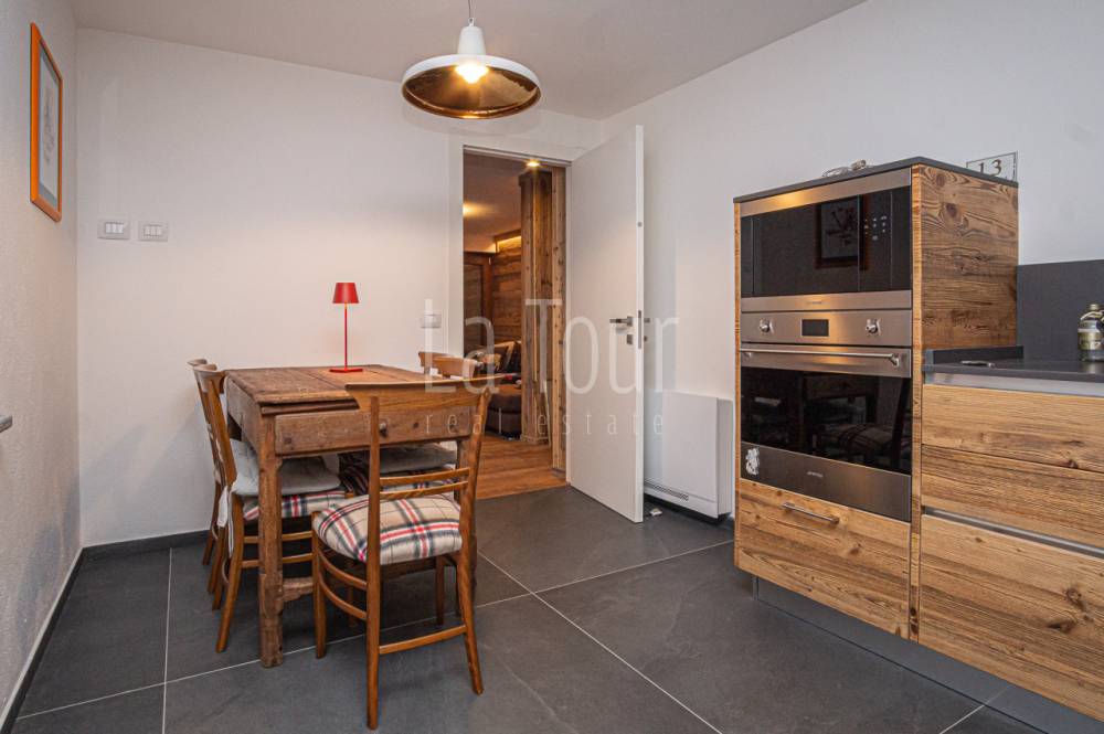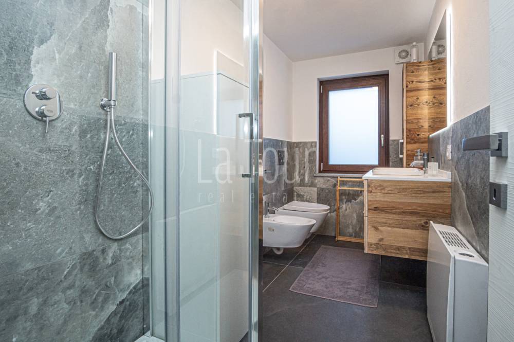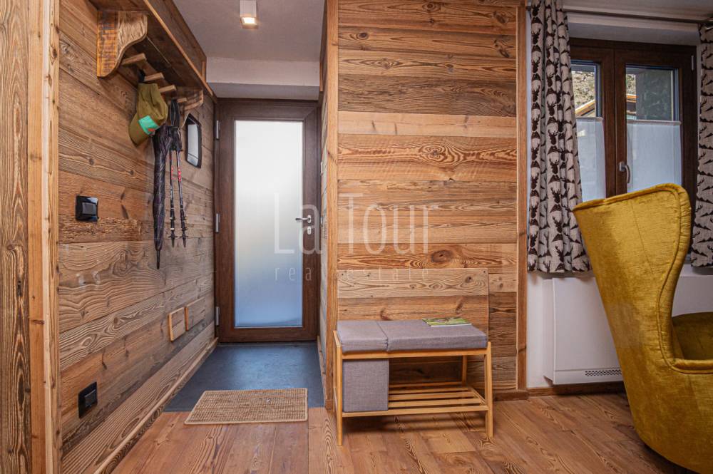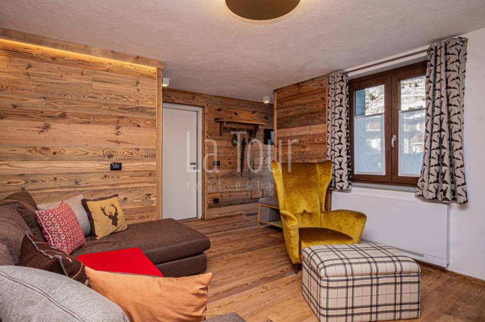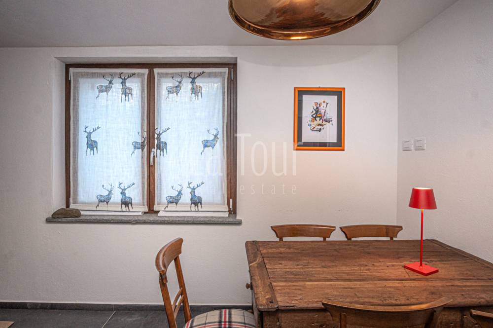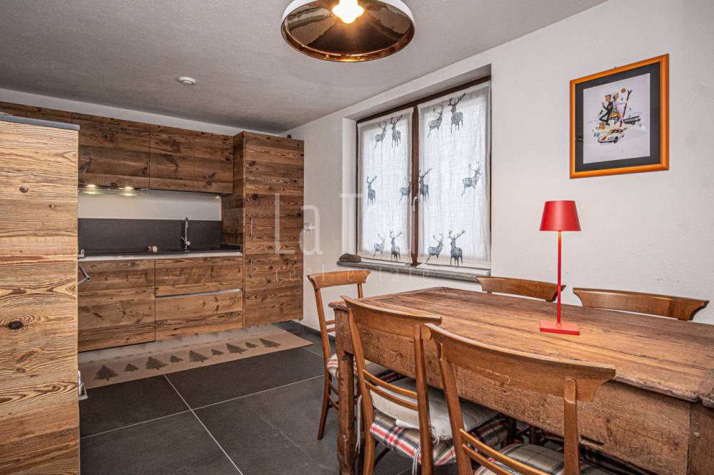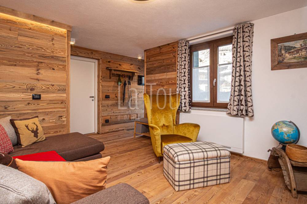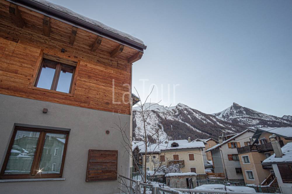 In centro paese, in posizione molto comoda (car free) in prossimità di tutti i servizi e delle piste da sci alpino e nordico, caratteristico villino indipendente, libero su tre lati, totalmente ristrutturato e riqualificato in classe A2, con consumi energetici molto ridotti. L'abitazione, completamente arredata, si sviluppa su due piani per i quali la distribuzione degli spazi è stata progettata per offrire il massimo confort, comprendendo inoltre un vano cantina interrato e un'ampia soffitta dotata di finestra e velux e con possibilità di collegamento diretto al vano scala interno, per realizzare un ulteriore vano fruibile. Al piano terreno, oltre ad un piccolo disimpegno di ingresso si trovano l'accogliente salotto, una spaziosa cucina abitabile arredata con mobilio di qualità, moderno ma dal carattere montano, ed un bagno finestrato di 6 mq.; al piano superiore, collegato da una scala circolare in metallo di design, vi sono due camere da letto matrimoniali rispettivamente di 14 e 16 mq., oltre al secondo bagno (anche questo con finestra) ed al balcone orientato a sud-est. L'impianto di riscaldamento, di nuova generazione (pompa di calore), dispone del sistema di controllo da remoto, molto utile per la gestione a distanza della caldaia. La proprietà comprende un vano tecnico con accesso diretto dall'esterno, ed una corte adiacente di ca. 30 mq. collegata alla via pubblica, sulla quale è possibile parcheggiare due auto in colonna.