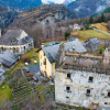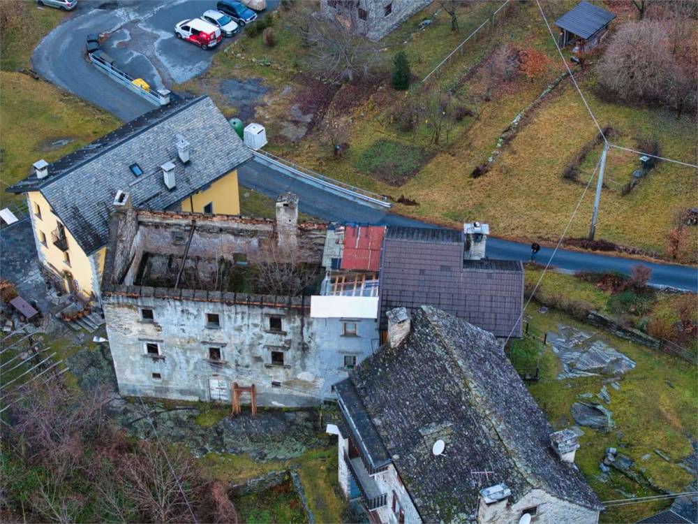 La proprietà si presenta interamente da ristrutturare, con muri perimetrali in pietra locale e strutture interne in legno, elementi architettonici tipici dell'edilizia alpina che permettono un recupero di grande fascino e valore. Il tetto è da riedificare, offrendo ampia libertà progettuale per una ristrutturazione moderna o conservativa.