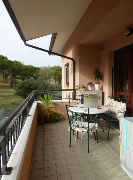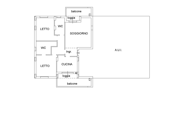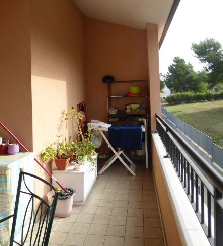 Unità al primo piano di un edificio con ascensore; composta da ingresso, soggiorno, cucina, due camere, due wc, disimpegno, due logge per totali mq 5 circa, due balconi di circa 8 e 10 mq l'uno. Il box auto ha una superficie di circa 25 mq.