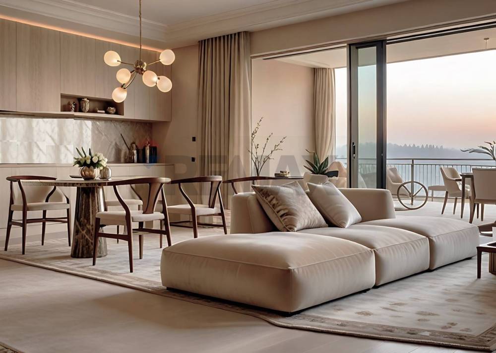 Lingresso si apre su unampia zona giorno doppia ed open space con cucina a vista, caratterizzata da grandi vetrate che collegano perfettamente linterno con lesterno. Il terrazzo, coperto e ben proporzionato, è pensato per accogliere una zona pranzo allaperto e un angolo relax.
