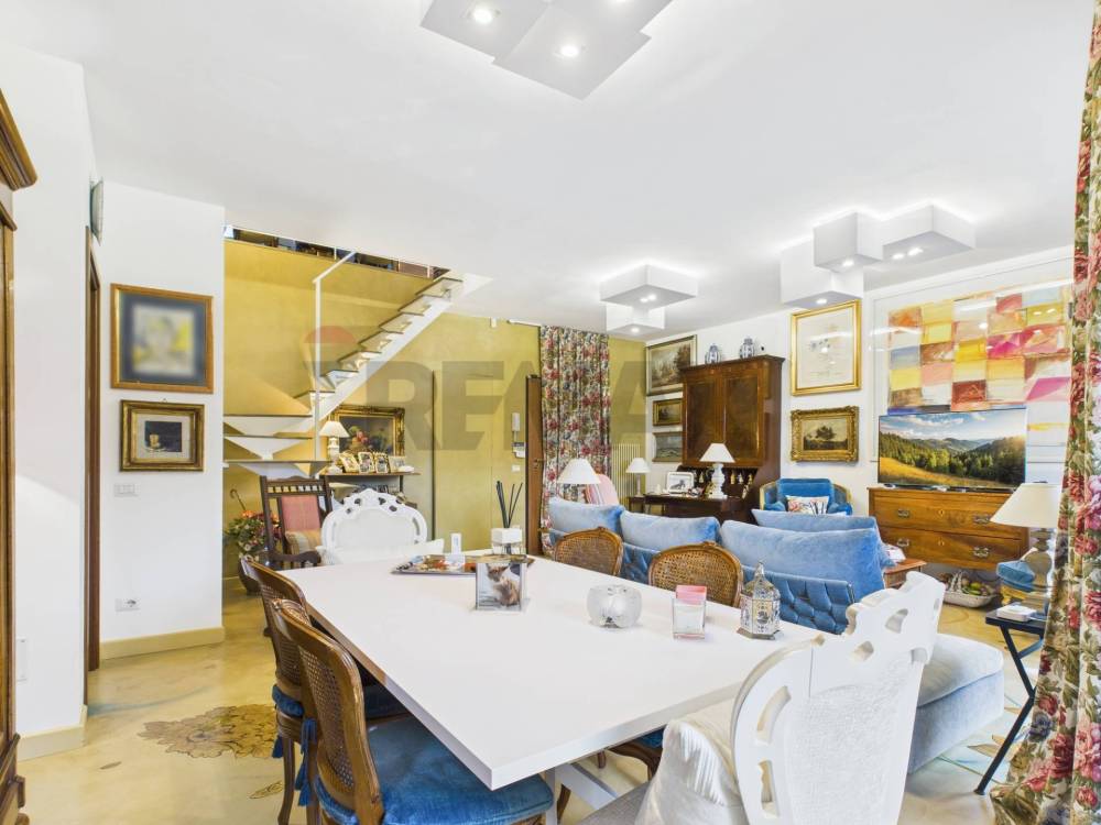 ENTRANDO CI ACCOGLIE UN AMPIO SOGGIORNO, SUDDIVISO IN ZONA LIVING E ZONA PRANZO, CON GRANDE VETRATA CHE PERMETTE L'ACCESSO AL PRIMO BALCONE. A COMPLETARE L'AMBIENTE, UNA SCALA INTERNA MODERNA E DI DESIGN CHE COLLEGA CON ELEGANZA I DUE LIVELLI DELL'ABITAZIONE. DAL SOGGIORNO SI ACCEDE DIRETTAMENTE ALLA CUCINA, FUNZIONALE E PROGETTATA PER GARANTIRE PRATICITÀ E CONFORT, E AL CORRIDOIO, DOTATO DI ARMADIATURE A MURO, CHE CONDUCE ALLA ZONA NOTTE COMPOSTA DA CAMERA DA LETTO MATRIMONIALE, CON ACCESSO ALL'ALTRO BALCONE, E DAL BAGNO CON VASCA